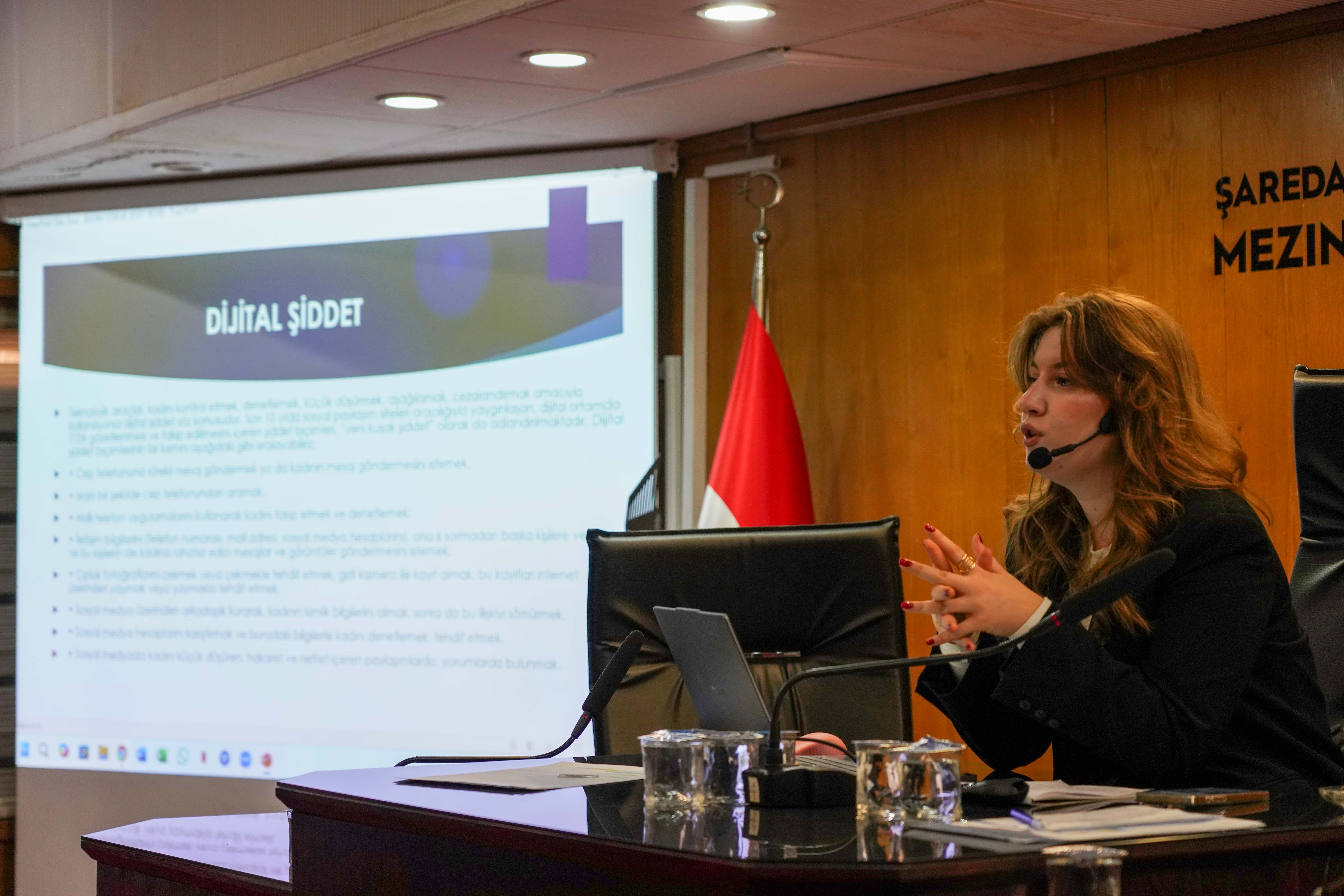Kadın ve Aile Hizmetleri Dairesi Başkanlığı 25 Kasım Kadına Yönelik Şiddete Karşı Uluslararası Mücadele Günü kapsamında kadına yönelik şiddet konusunda farkındalık oluşturmak amacıyla belediyenin kadın çalışanlarına yönelik bir seminer düzenledi. Belediye Meclis Salonunda gerçekleştirilen seminerde, Diyarbakır Barosu Kadın Hakları Merkezi Temsilcisi Avukat İrem İlhan, “Kadına Yönelik Şiddet”, “Şiddet Türleri”, “Ailenin Korunması ve Kadına Karşı Şiddetin Önlenmesine Dair Kanuna (6284)” dair sunum gerçekleştirdi.