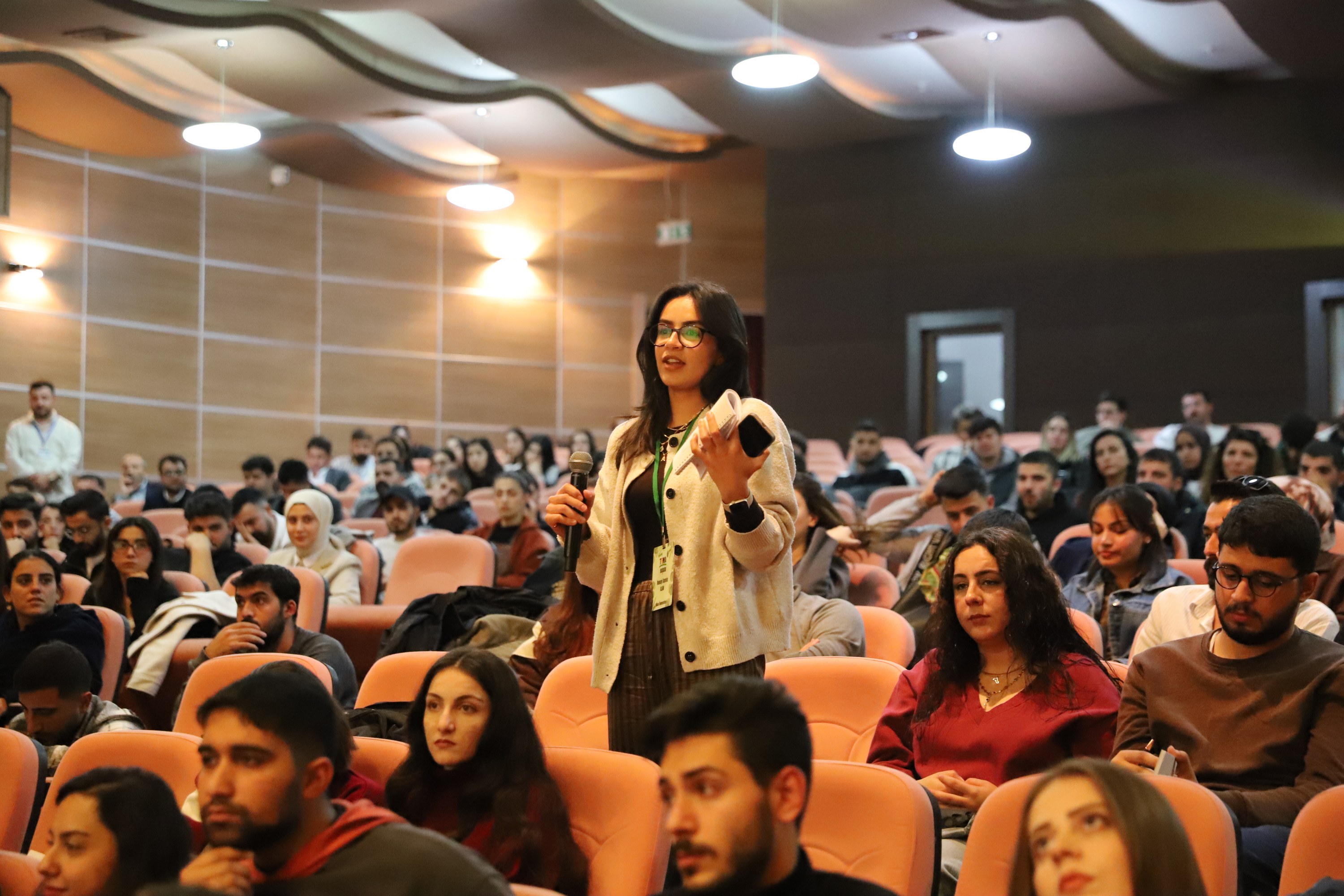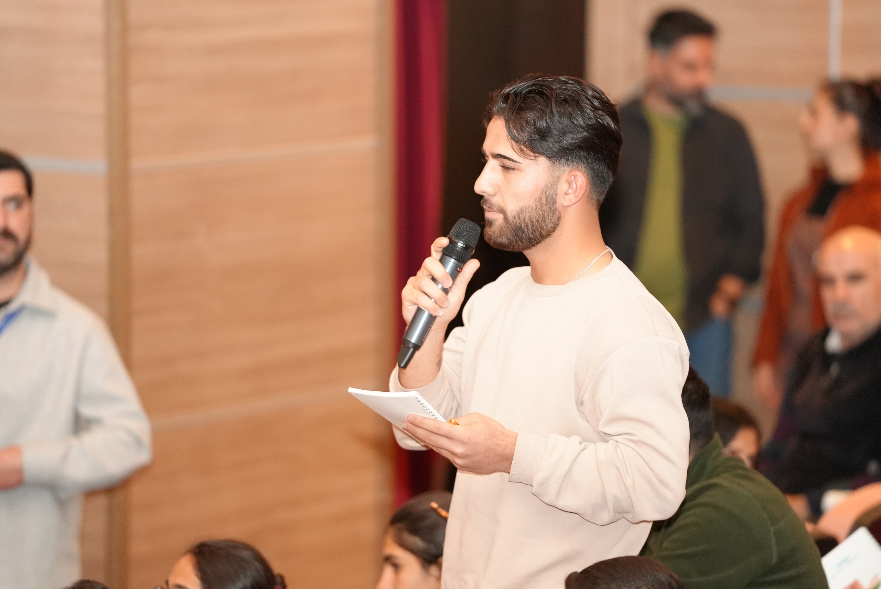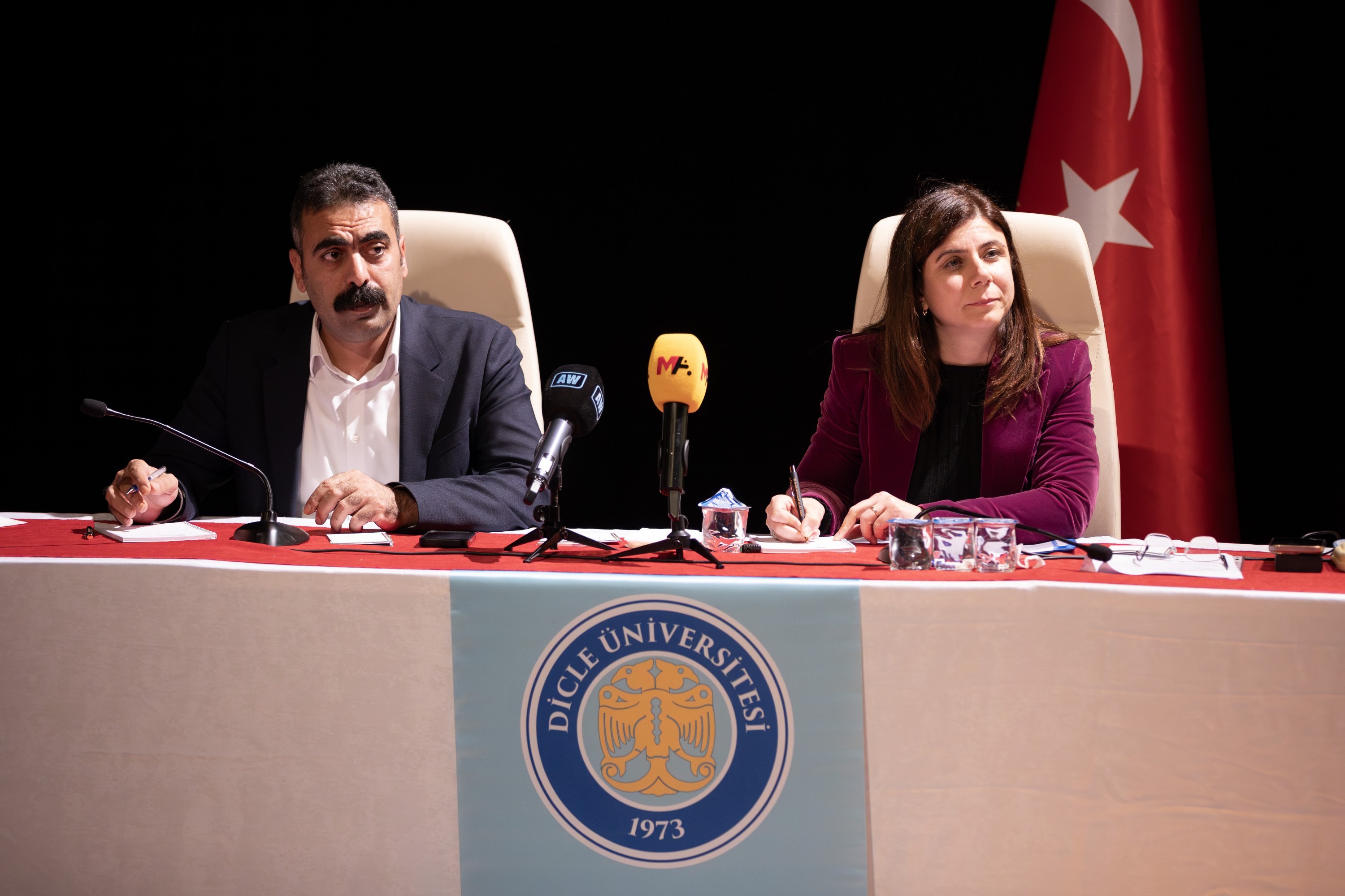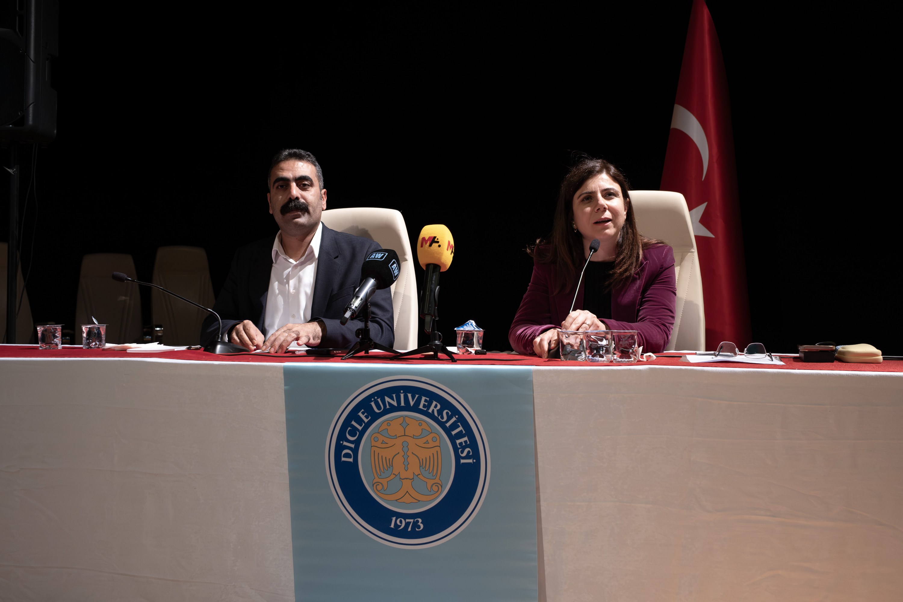 Diyarbakır Büyükşehir Belediyesi Eşbaşkanları Serra Bucak ve Doğan Hatun, üniversiteli gençlerle düzenlenen buluşmada yerel yönetim, ulaşım, ekoloji, dil çalışmaları ve demokratik katılım üzerine soruları yanıtladı.
