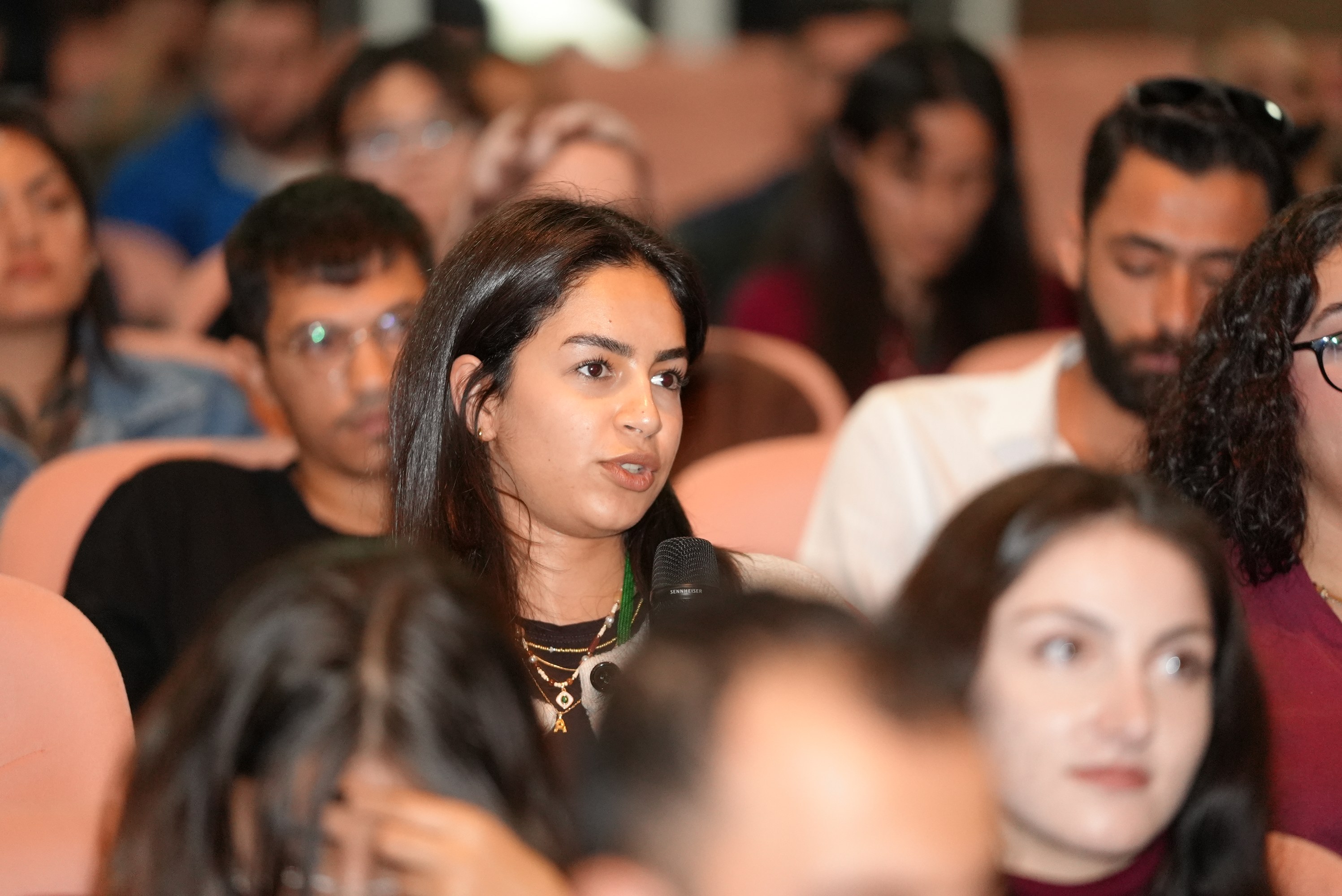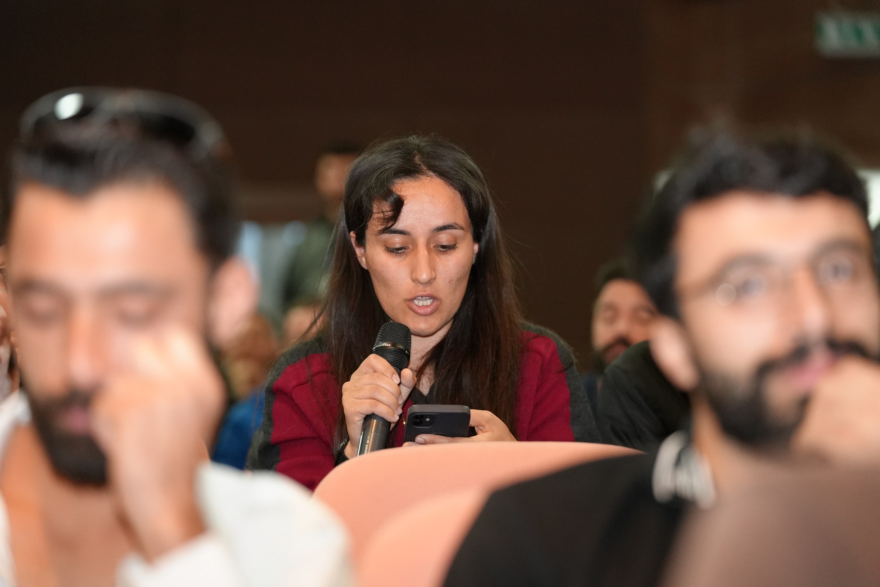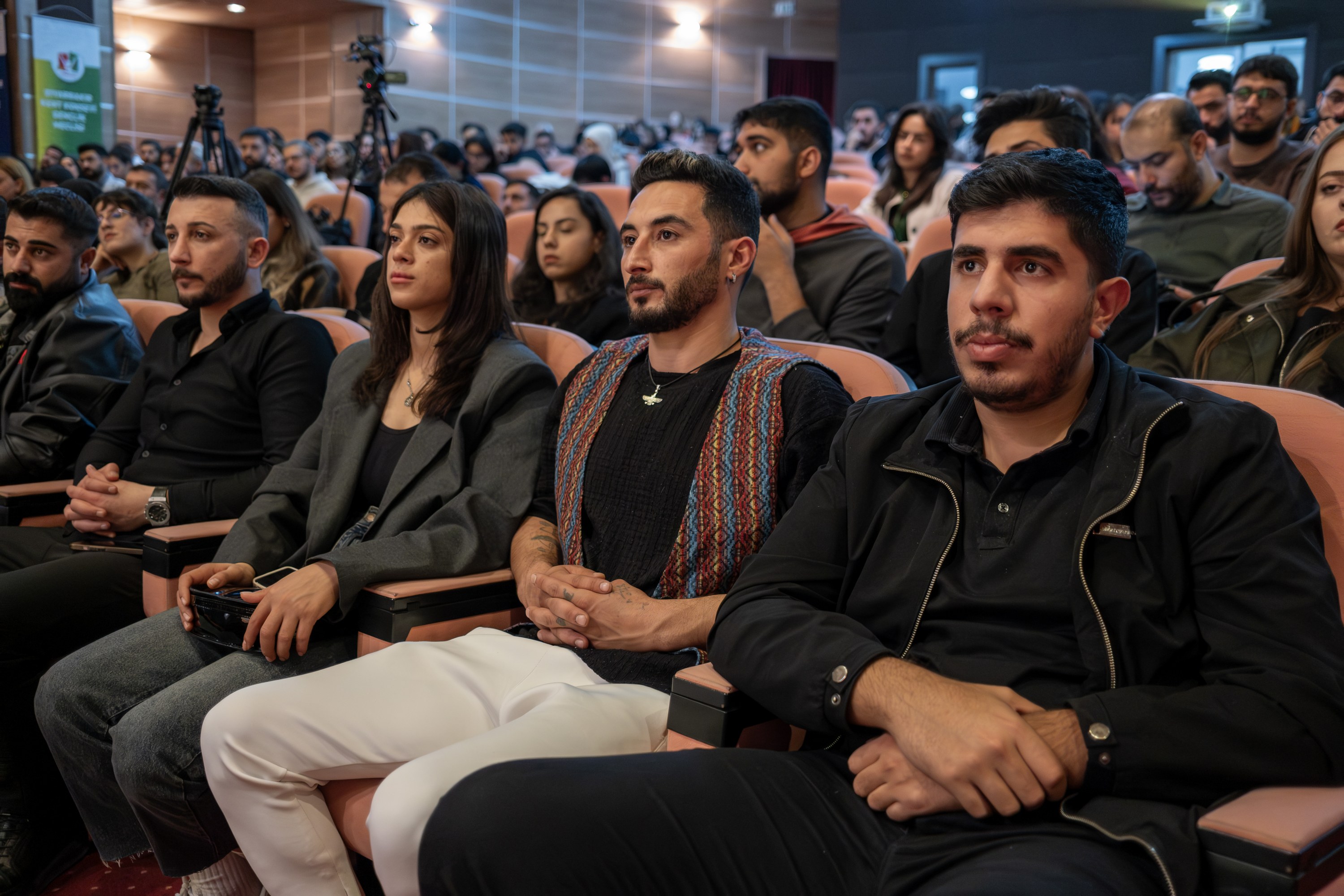 Eşbaşkan Serra Bucak ise öğrencilerle bir arada olmaktan duyduğu memnuniyeti dile getirerek, Ortadoğu’nun ve bölgenin zorlu süreçlerden geçtiğini hatırlattı. Yerel yöneticiler olarak gençlerin demokratik toplum ve barış inşasına dair fikirlerine önem verdiklerini vurgulayan Eşbaşkan Bucak, söylenen her sözün bir politika inşasına katkı sunduğunu belirtti. Kentte yoksulluk, kadın politikaları ve gençlere yönelik hizmetler gibi pek çok konuda gençlerin eleştiri ve önerilerine ihtiyaç duyduklarını ifade eden Eşbaşkan Bucak, şunları söyledi: “Bu kalabalığı görünce verimli tartışmalar yapılabileceğini görüyoruz. Kente dair sahici ve gerçekçi eleştirilerinizi duymak istiyoruz. Eleştirileriniz ve ön açıcı projeleriniz varsa buna açığız. Gençliğin büyük zorluklar yaşadığını biliyoruz. Demokratik toplum ve barış diyoruz çünkü bu süreç özgürlüklerin önünü açarsa, siz gençlerin hayallerini gerçekleştirebileceği bir ortam da mümkün olur.”