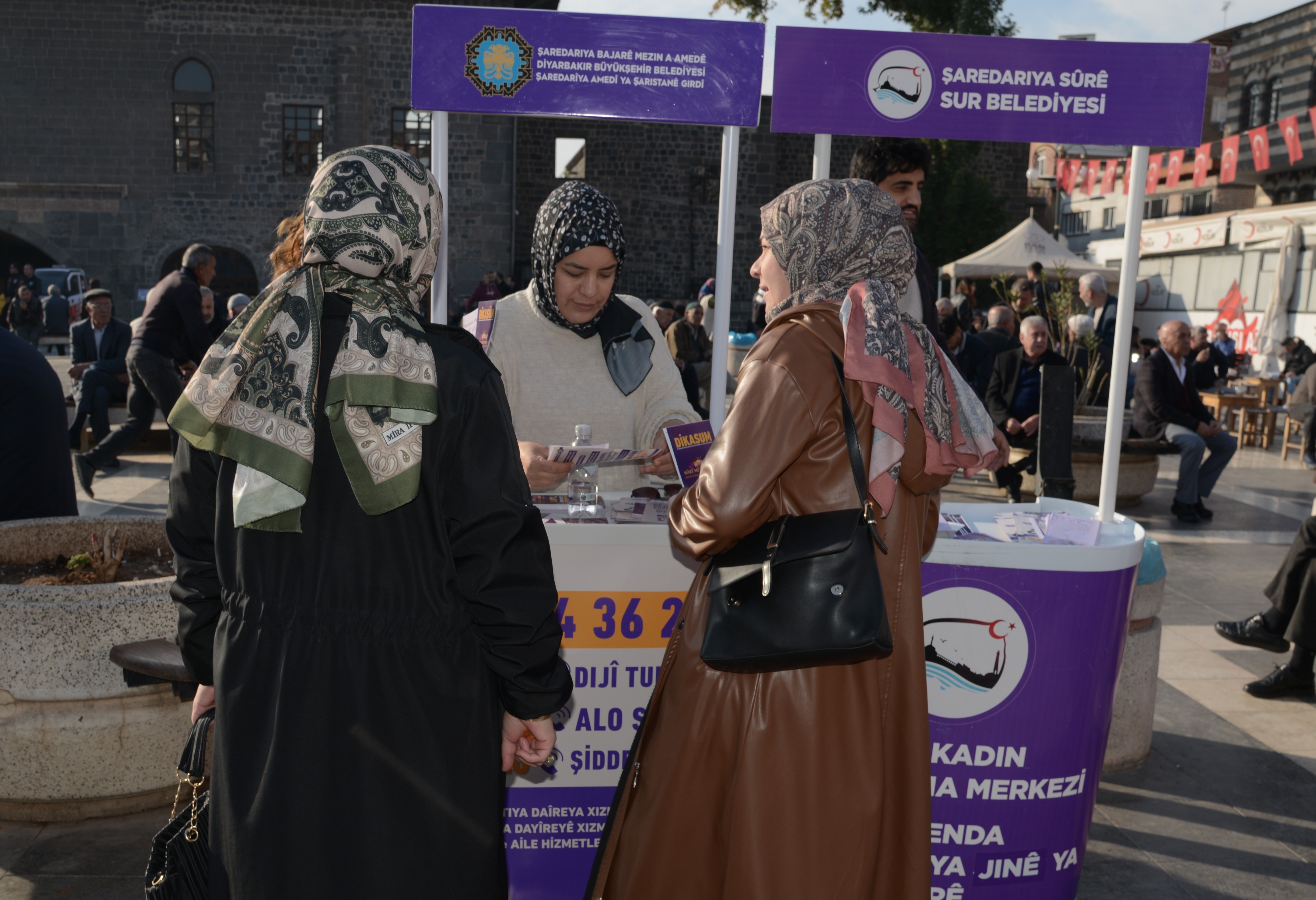 Sur, Yenişehir, Bağlar ve Kayapınar belediyeleriyle ortak yürütülen çalışmalar kapsamında Gazi Caddesi, Ceylan AVM, Ninova AVM ve Sanat Sokağında bilgilendirme stantları kuruldu. Stantlarda üç gün boyunca kadına yönelik şiddetle mücadelede kullanılabilecek tüm destek mekanizmaları kadınlara doğrudan aktarılacak.