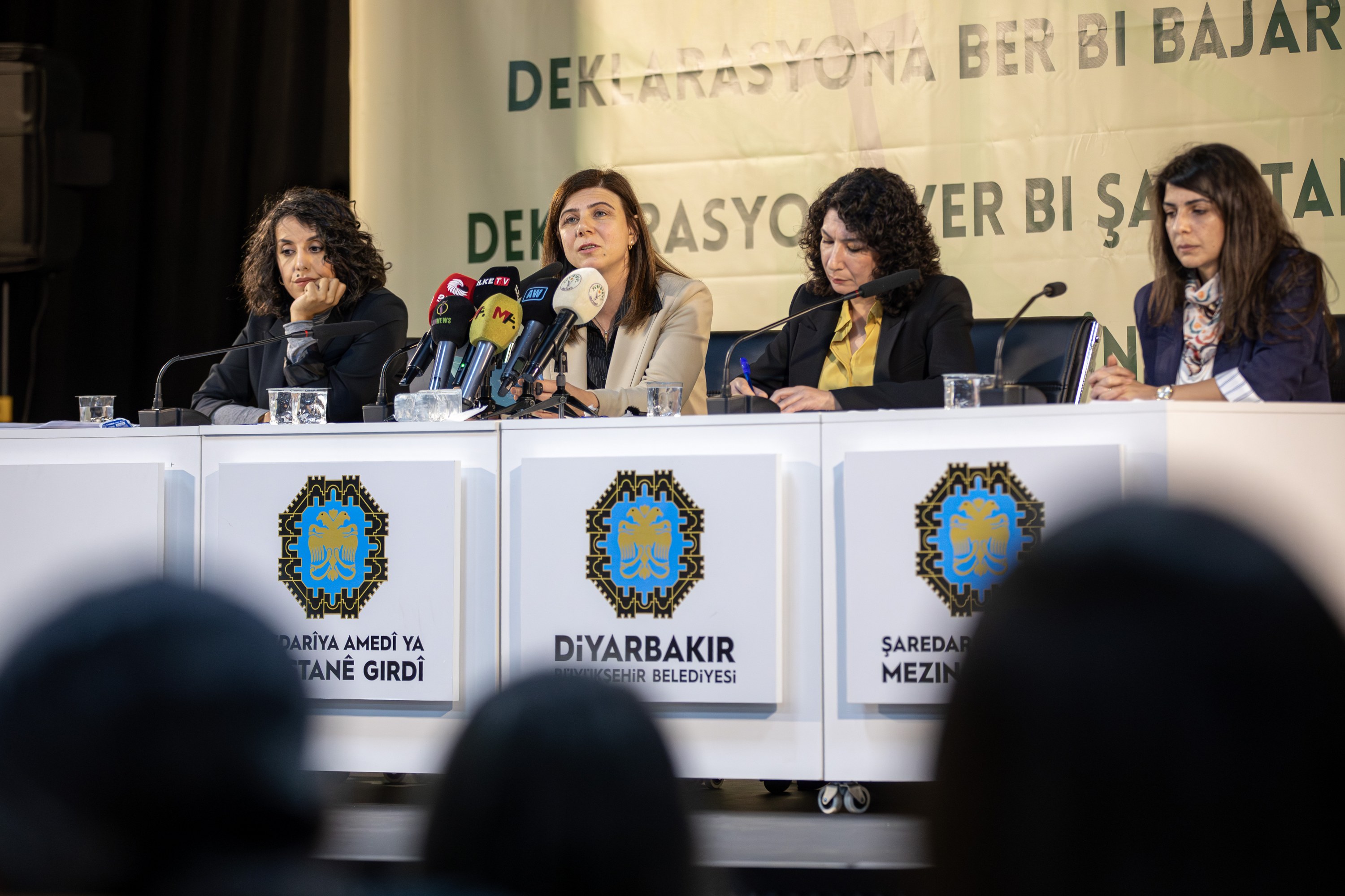 Diyarbakır Büyükşehir Belediyesi Eşbaşkanı Serra Bucak, “Amed Kadın Kentlerine Doğru Deklarasyonu” açıklamasına katılarak, “Biz bu kenti kadın aklıyla, emeğiyle, hafızasıyla; kadınların barışta ve demokratik yaşamda ısrarıyla, kadınlar adına değil kadınlarla birlikte yeniden kurma kararlılığımızı buradan ilan ediyoruz” dedi.