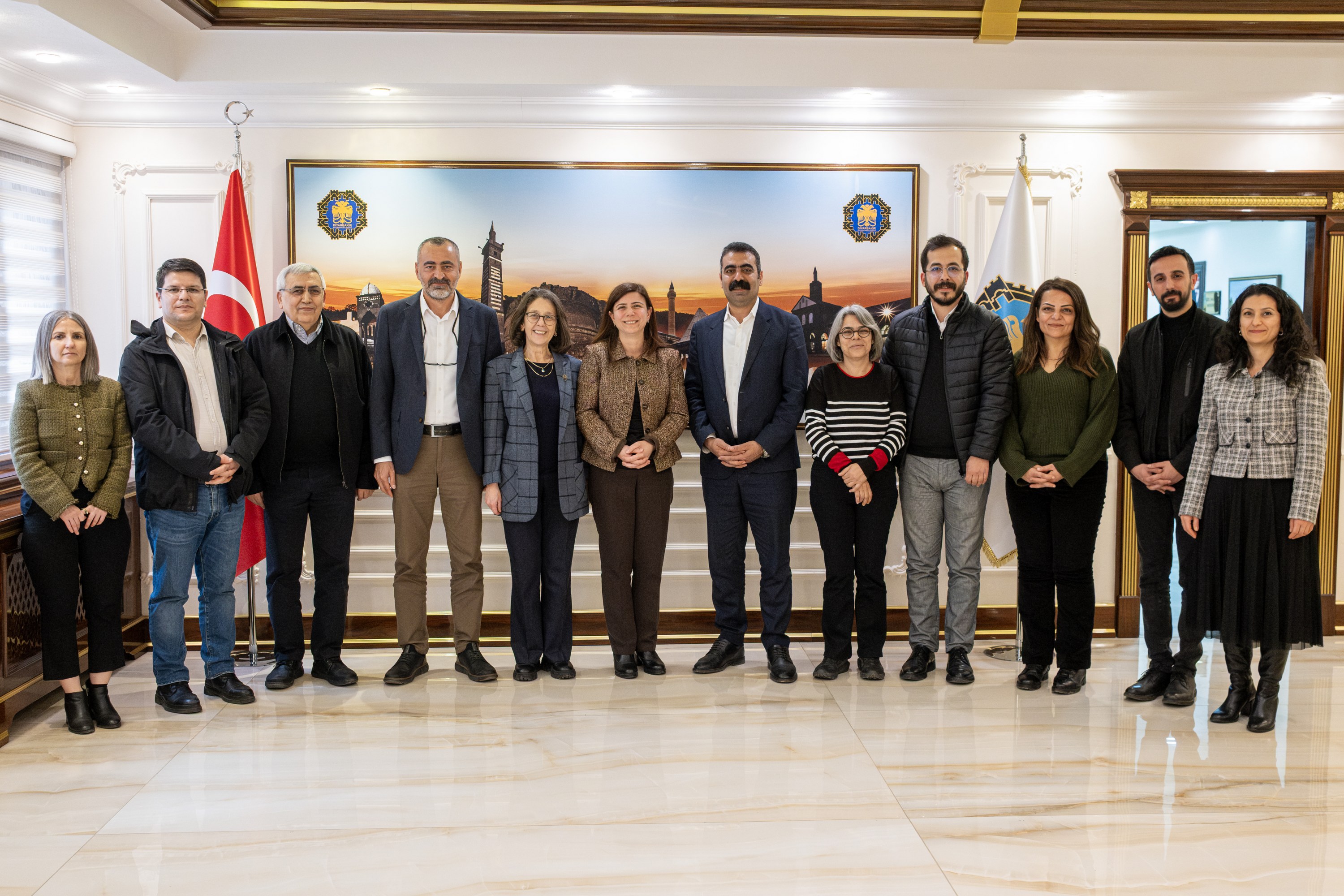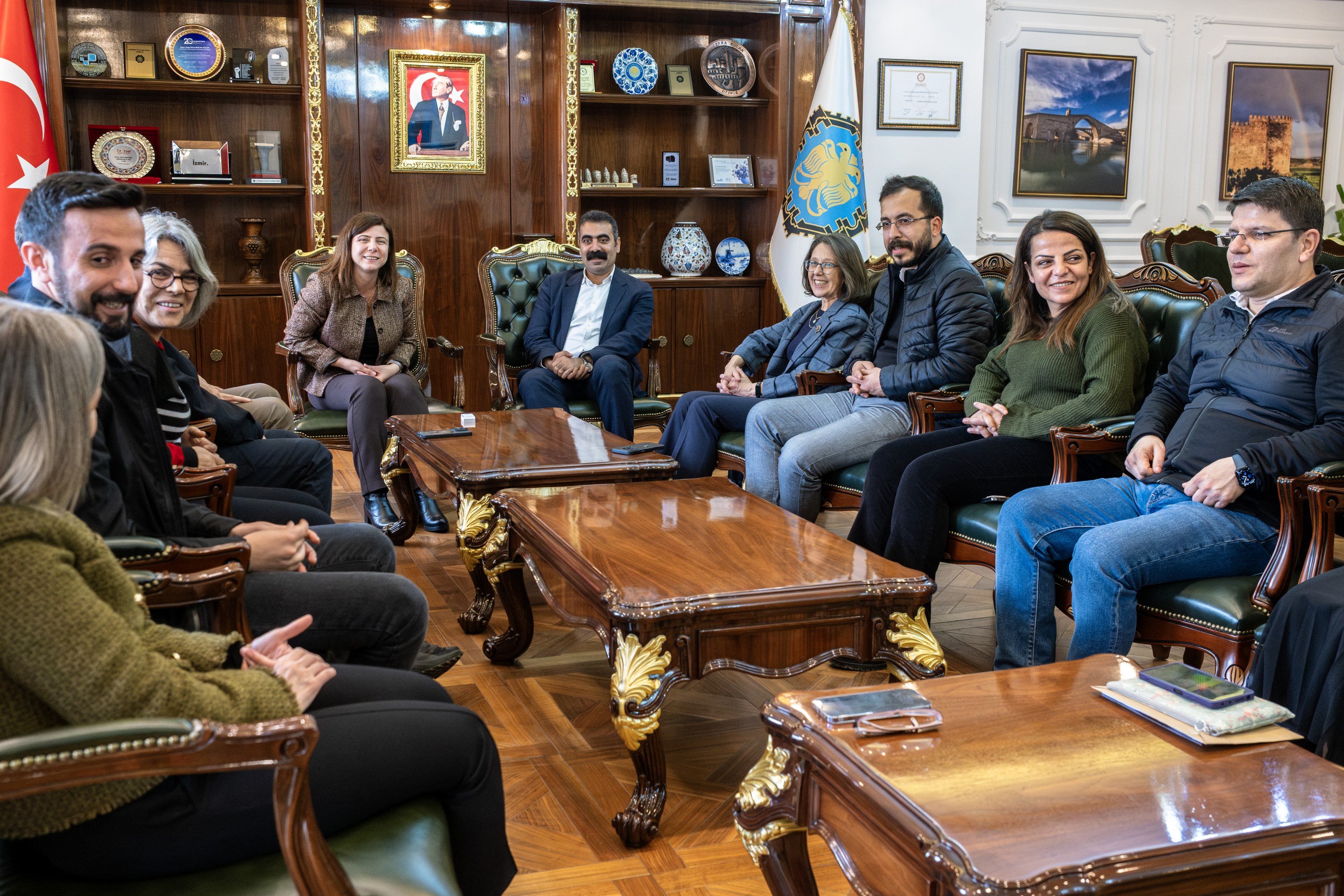 Büyükşehir Belediyesi Eşbaşkanları Serra Bucak ve Doğan Hatun tarafından karşılanan heyetle gerçekleştirilen görüşmede, yerel yönetimler ile insan hakları alanında yürütülen çalışmalar değerlendirildi ve karşılıklı fikir alışverişinde bulunuldu.