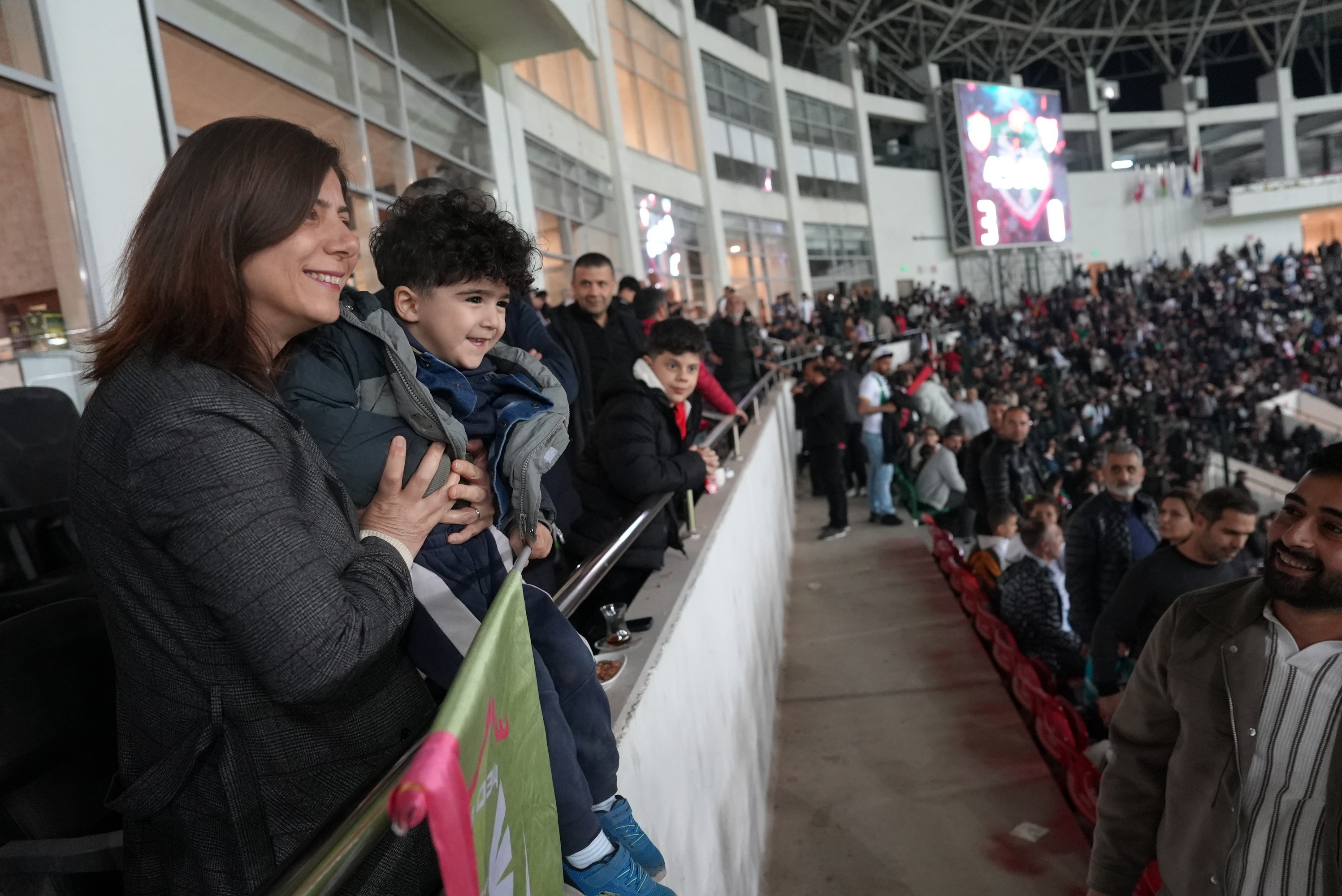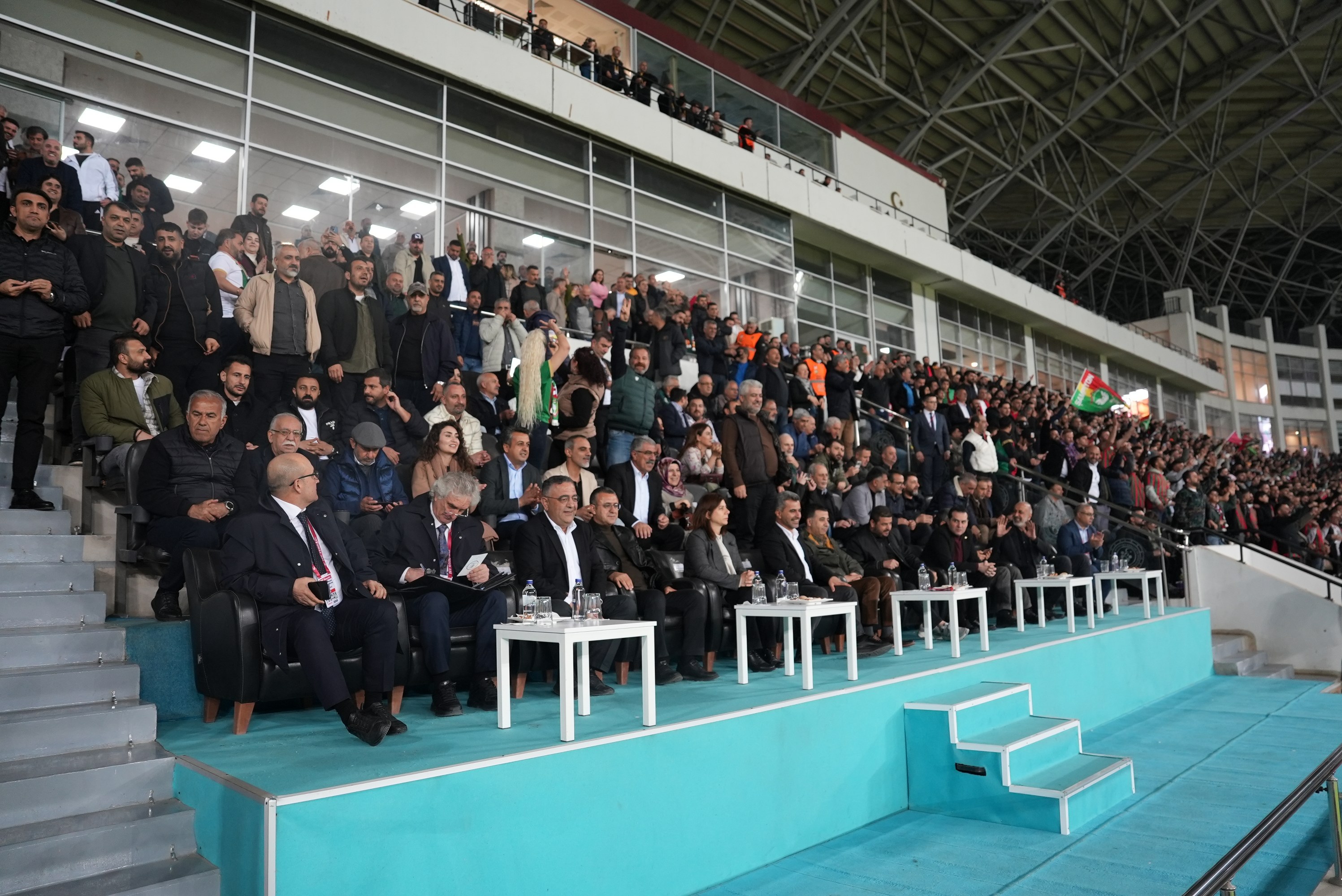 Karşılaşmayı takip eden Eşbaşkan Bucak, tribünlerde yoğun ilgi gören mücadelede taraftarların coşkusuna ortak oldu.