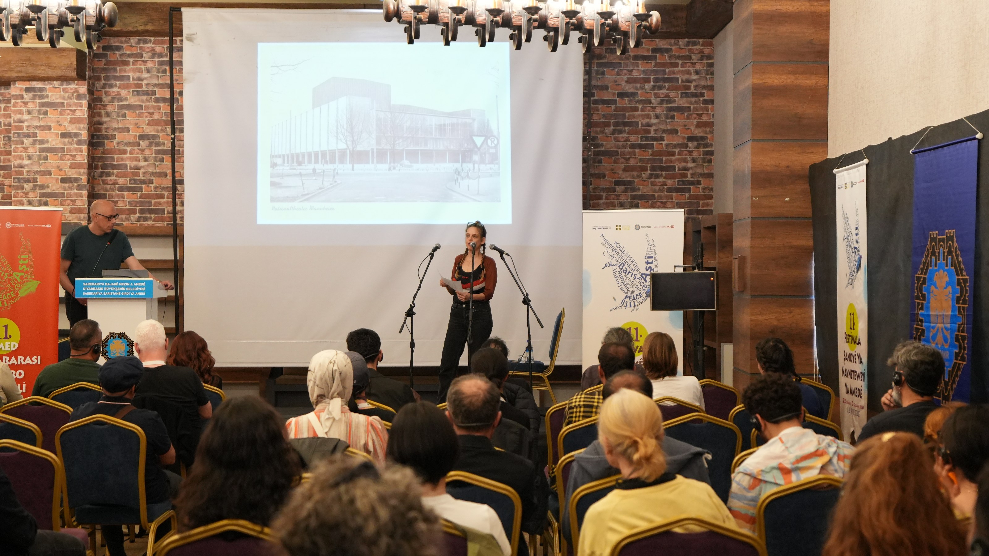 Hendrik ise Almanya’nın tiyatro tarihine ışık tutarak, II. Dünya Savaşı’nın ardından yüzlerce tiyatro binasının yıkıldığını hatırlattı. Mannheim Ulusal Tiyatrosu’nun yeniden inşa sürecine dikkat çeken Hendrik, şeffaf mimari anlayışın Nazi döneminin anıtsal estetiğine karşı güçlü bir yanıt olarak ortaya çıktığını ifade etti. Cam ve metalden inşa edilen bu yapının, geçmişle yüzleşmenin ve kolektif hafızayı canlı tutmanın simgesi olduğunu belirten Hendrik, tiyatronun dil ve kültür aracılığıyla toplumsal birleştirici rolüne dikkat çekti. Etkinlik, izleyicilerin yoğun katılım gösterdiği soru-cevap bölümüyle sona erdi.