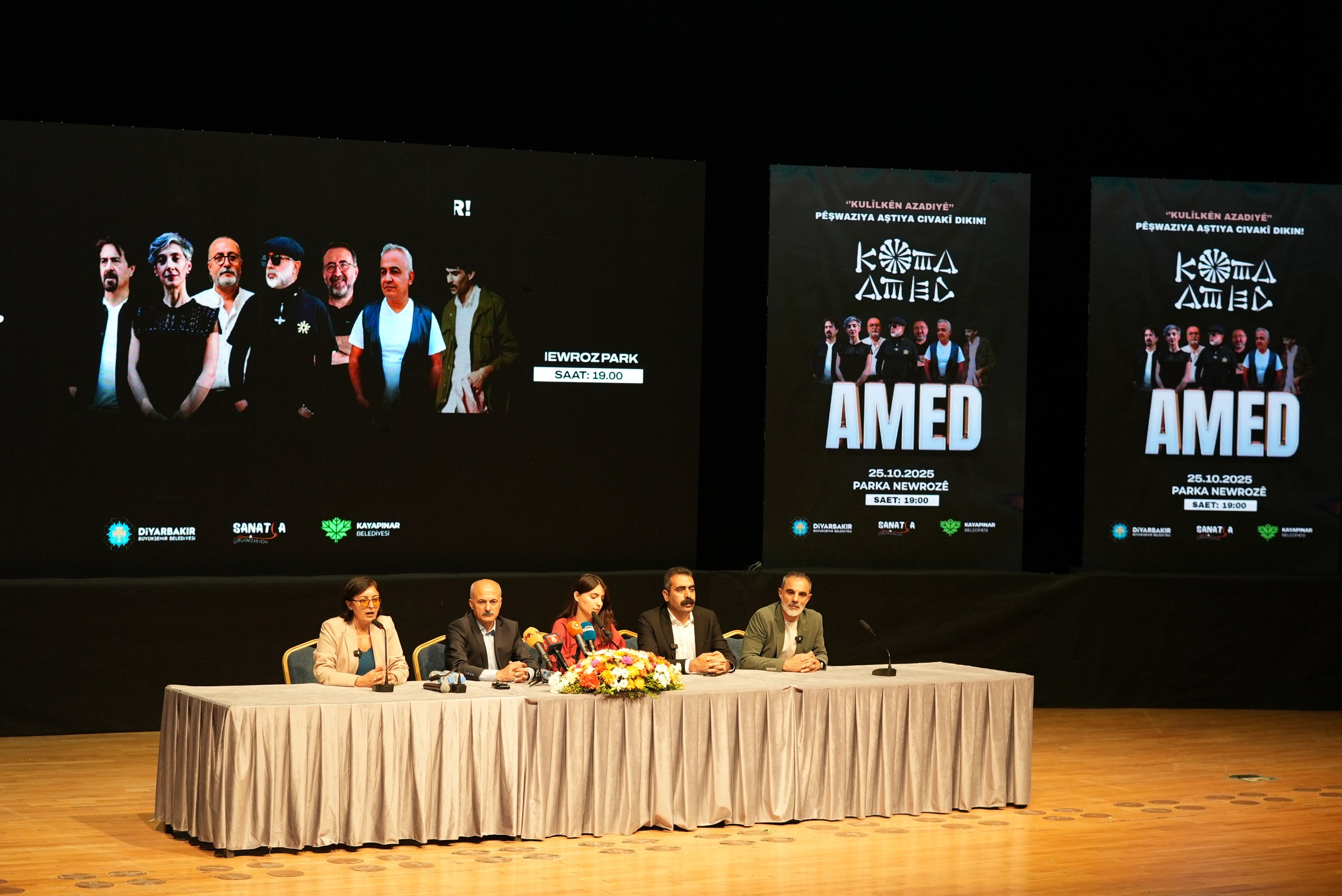 Koma Amed, piştî 30 salan ji nû ve bi mazûvaniya Şaredariya Bajarê Mezin a Amedê û Şaredariya Kayapinarê, dê li Amedê konserekê bide. Hevşaredarê Bajarê Mezin Dogan Hatun û Hevşaredarên Şaredariya Kayapinarê Bêrîvan Gulşen Sîncar û Cengîz Dundar, li Navenda Çand û Kongreyê ya Çand Amedê civîneke çapemeniyê der barê konsera ku dê 25'ê Çiriya Pêşîn li Parka Newrozê pêk were, li dar xistin. Ji bilî hevşaredaran, nûnerên rêxistinên civaka sivîl û partiyên siyasî jî beşdarî civînê bûn.