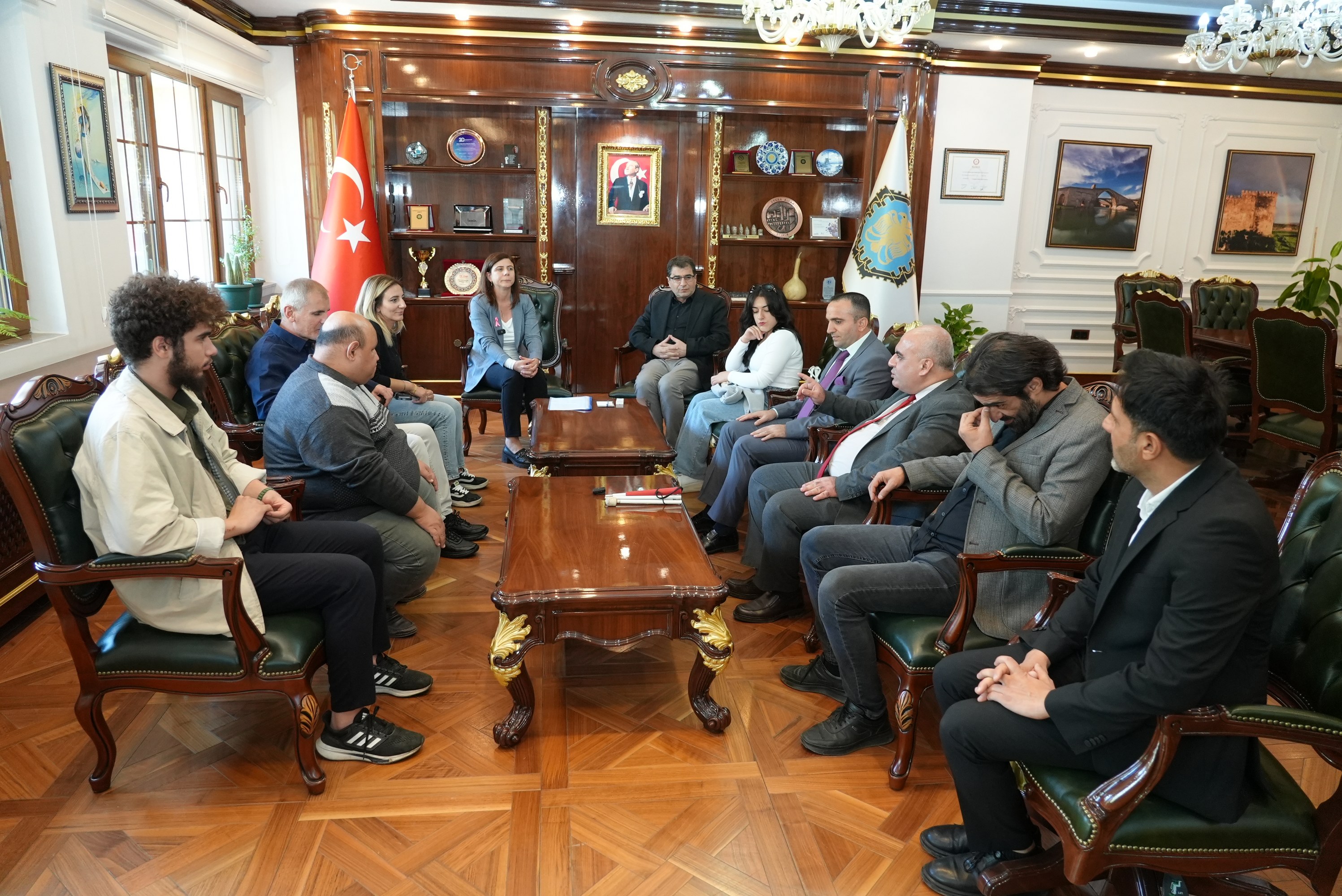 Şandeya ku ji aliyê Hevşaredara Şaredariya Bajarê Mezin Serra Bucak û Sekreterê Giştî Emrûllah Gorduk ve hat pêşwazîkirin, pirsgirêkên gihîştinê yên li bajêr û rêziknameyên ku dê jiyana astengdarên dîtinê hêsan bikin, anîn rojevê.