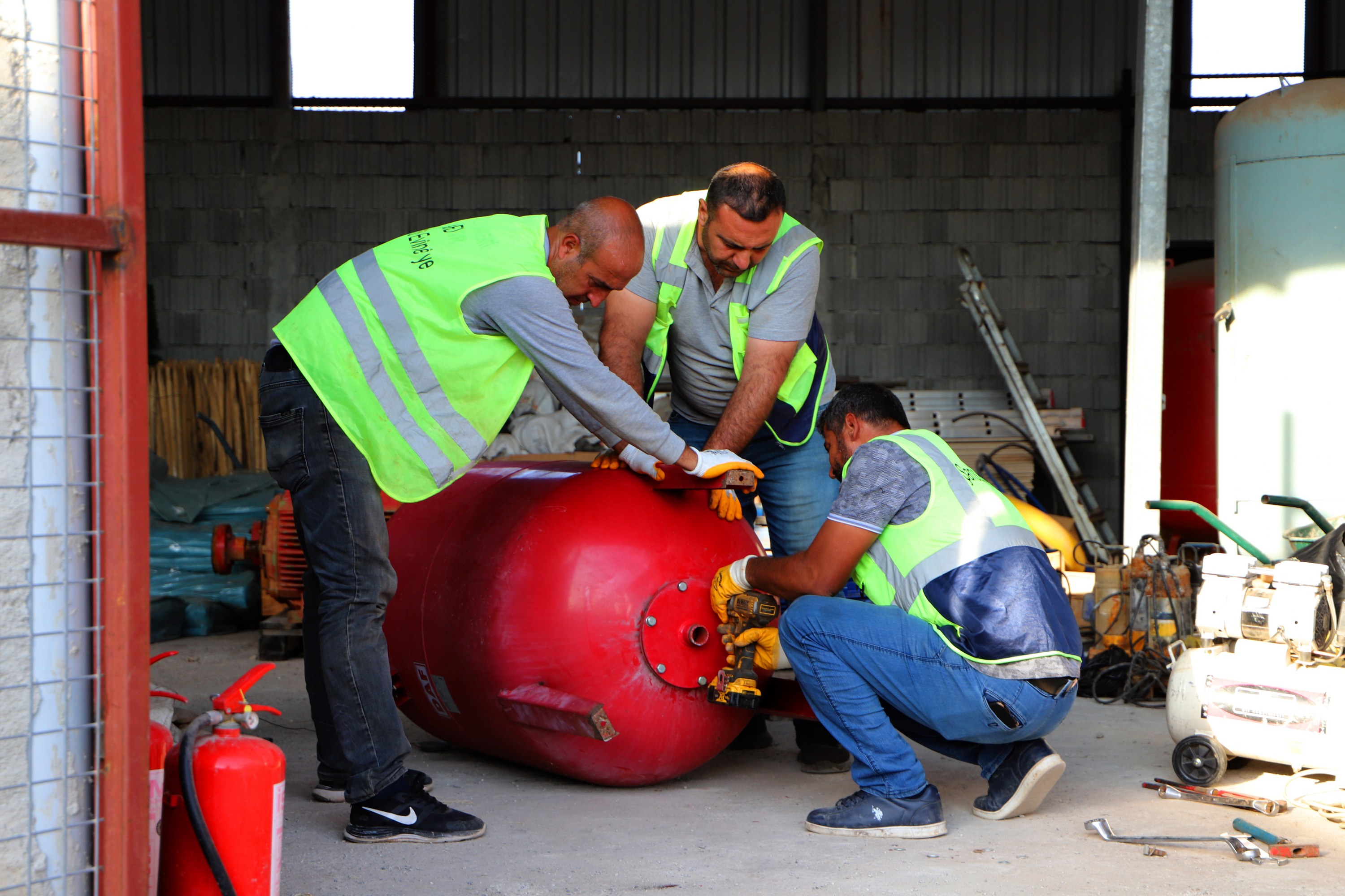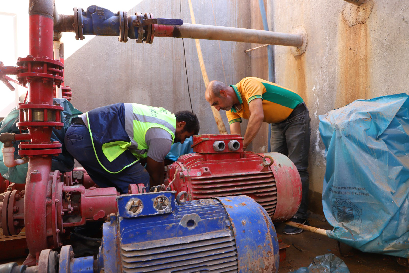 Tîmên ku li atolyeya di kampusê Serokatiya Daîreya Park û Baxçeyan de dixebitin, motorên avê û hîdroforên xerabûyî yên ji qadê hatine anîn, dîsa dikin fonksîyonel, vediguhezînin cihên ku lê hatine girtin û girêdanên wan çêdikin.