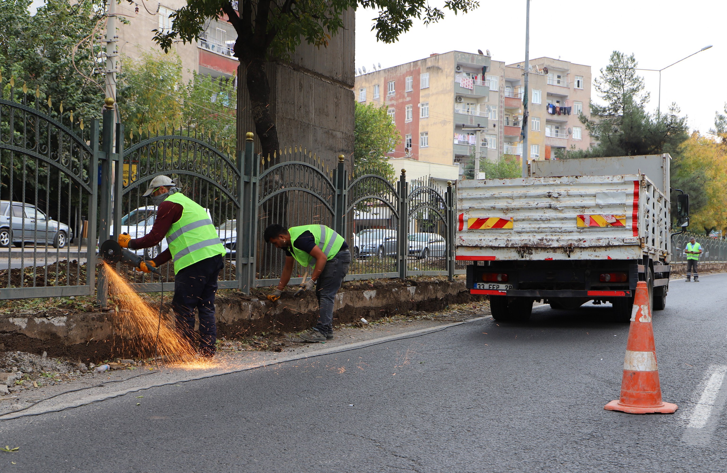 Di çarçoveya karên binesaziyê de, tîman ji bo ku pêşveçûna nebatan bi awayekî tendurist bidome, li refûjan xetên avdanê danîn. Herwiha ji ber ewlehiya peyayan, hesinên ferforje yên li ser Rêya Karacadaxê jî tên rakirin. Ferforjeyên hatine rakirin, piştî boyaxkirin û anîna asta guncaw, wê dîsa li cihên wan bên bicîkirin.