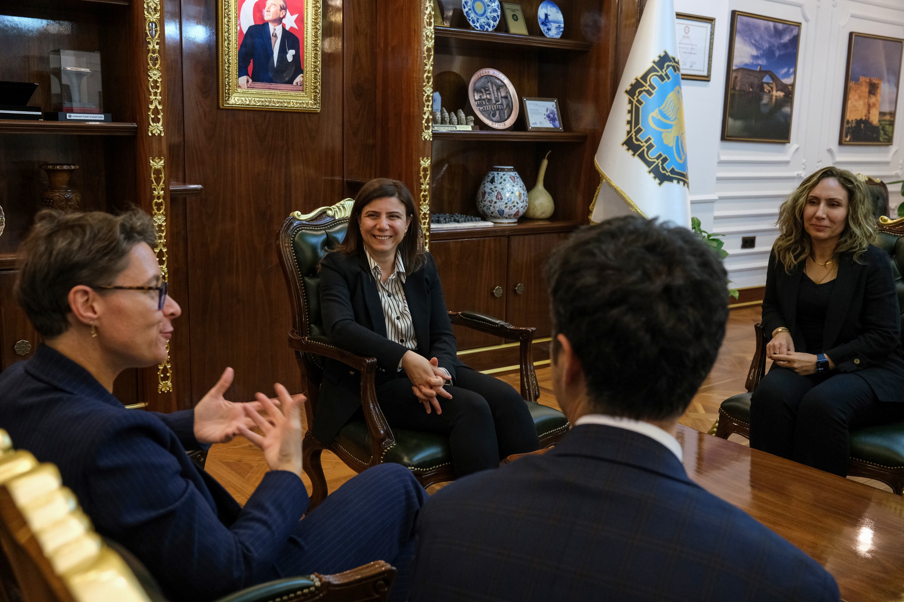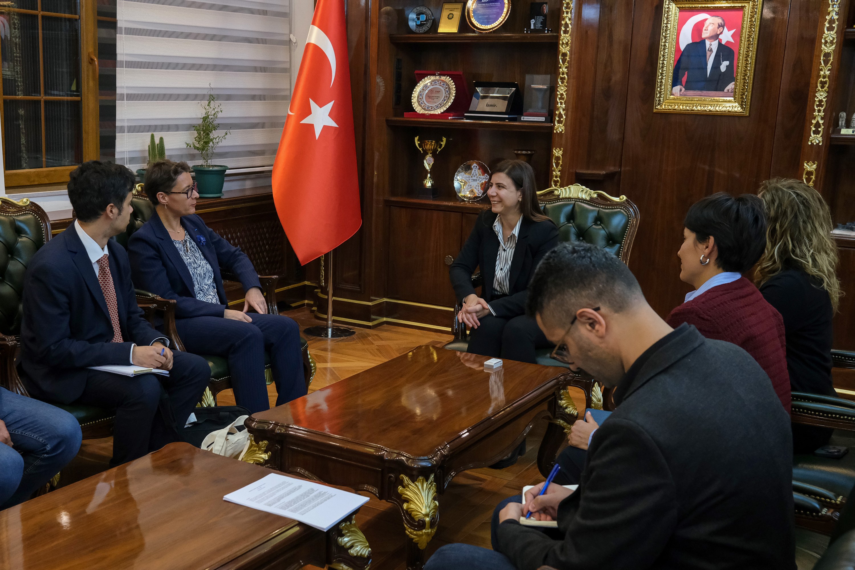 Piştî pêşwaziyê, Hevseroka Şaredariya Bajarê Mezin Serra Bucak û Dumont hevdîtinek pêk anîn. Di serdanê de li ser geşedanên rojane yên herêmê nêrîn hatin guhertin.