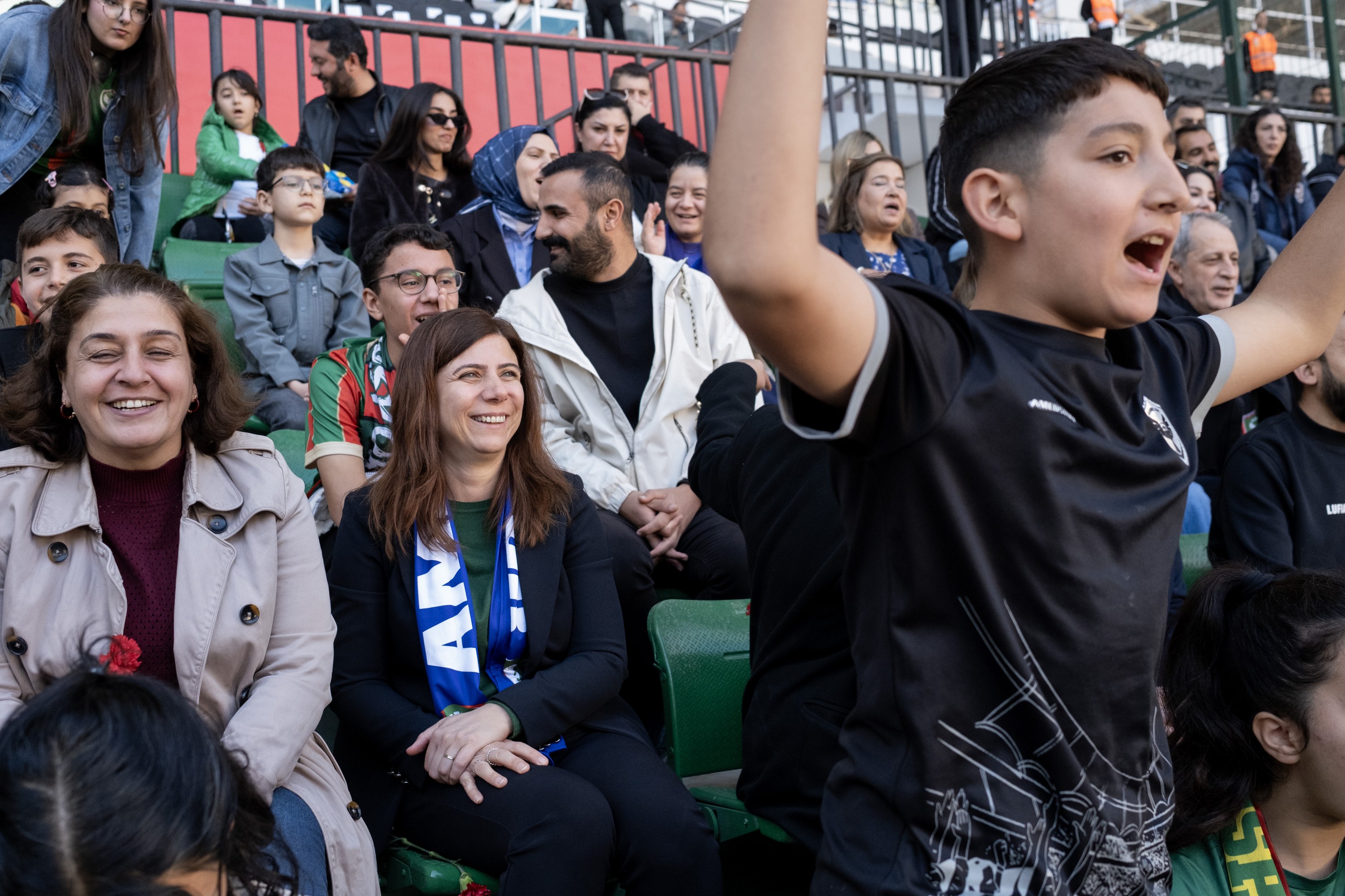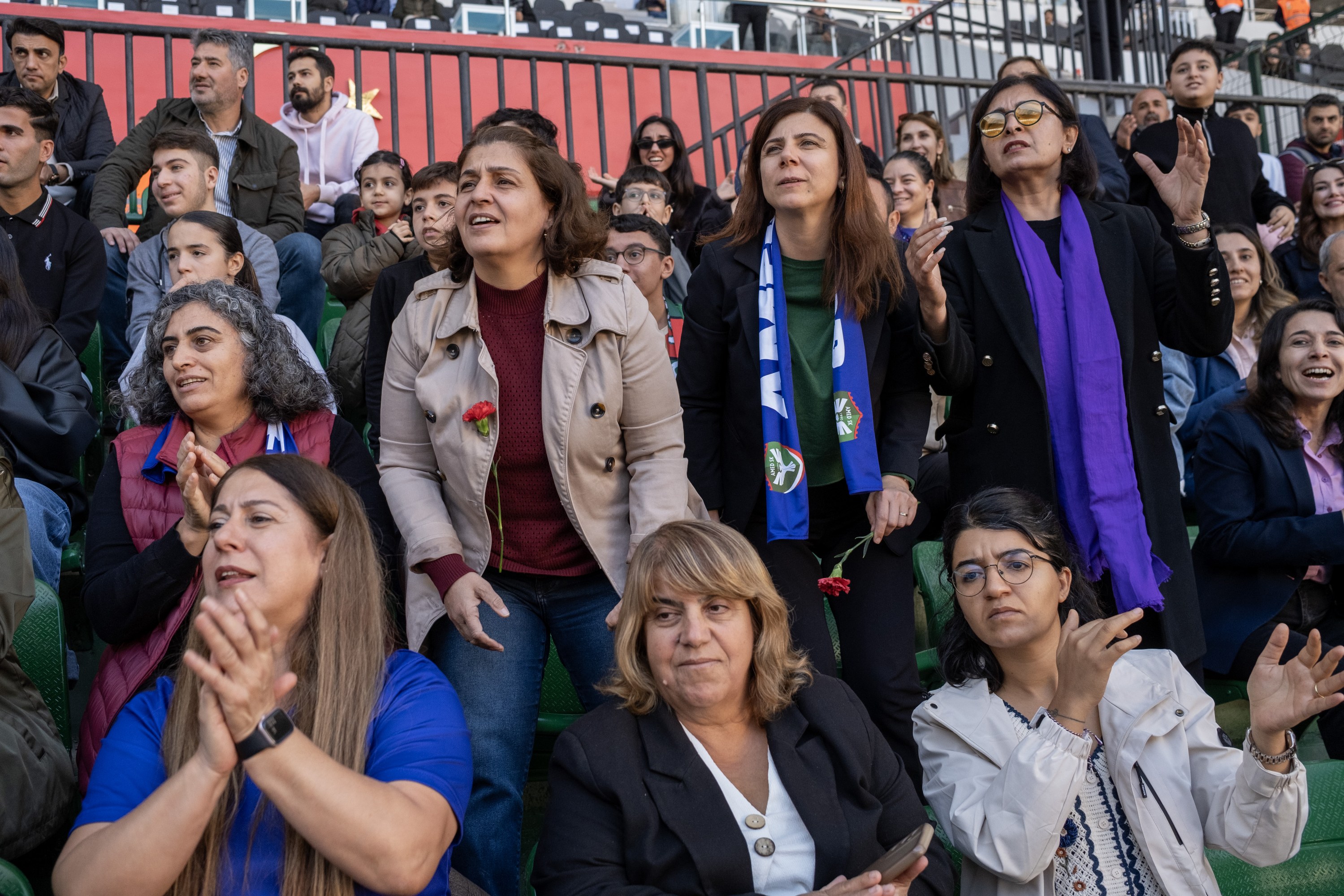 Hevseroka Şaredariya Bajarê Mezin a Amedê Serra Bucak, pêşbirka ku di navbera tîmên futbolê yên jinan ên Amedspor û Trabzonsporê de li Stadyûma Amedê hat lîstin, li trîbûnê temaşe kir.