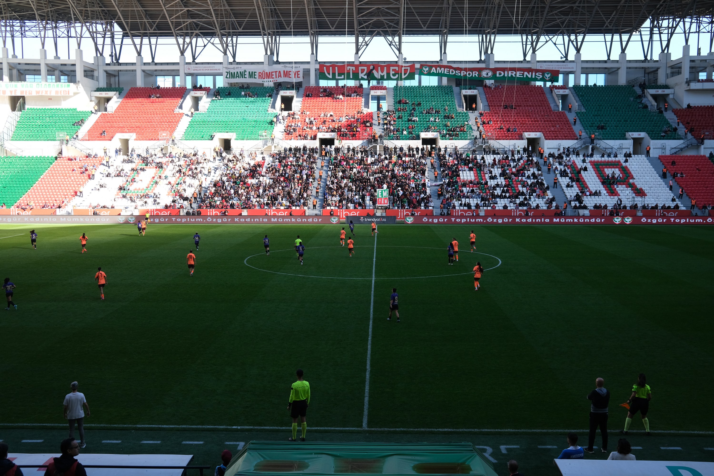 Pêşbirka Amedspor-Trabzonsporê ya ku di hefteya 10emîn a Lîga Super a Futbola Jinan de hat lîstin, ji ber Roja Têkoşîna Navneteweyî ya li Dijî Tundiya li Ser Jinan rastî eleqeyeke zêde ya jinan hat. Jinên ku hatin Stadyûma Amedê, hem piştgirî dan tîmên xwe hem jî li gorî wateya 25ê Mijdarê daxwazên xwe anîn ziman. Koreografiya Jîna Emînî ya ku li Îranê hatibû qetilkirin jî rastî ecibandinê hat.