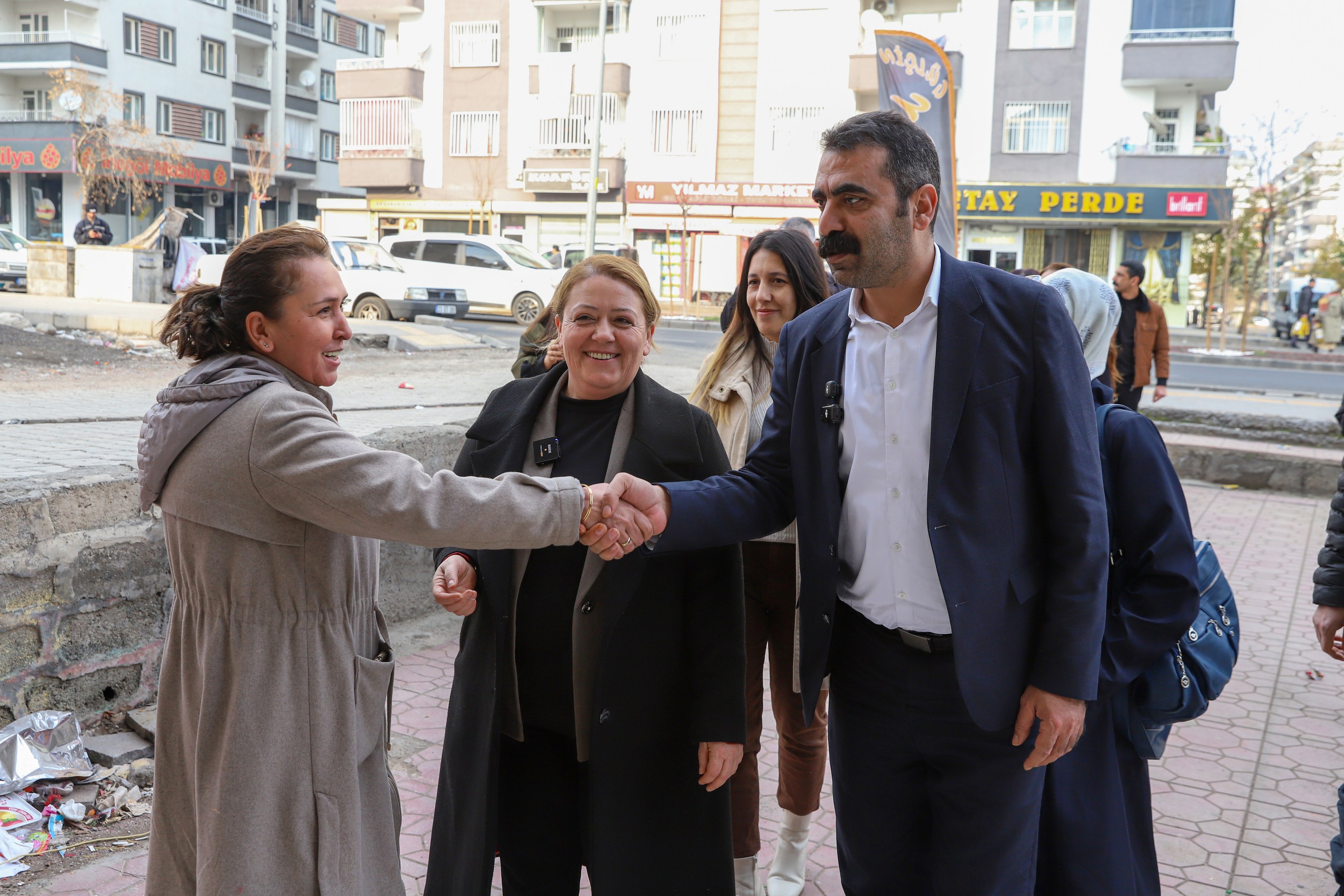 Hevşaredarên Bajarê Mezin ê Amedê Serra Bucak û Dogan Hatun, li navçeya Rezanê (Baxlar) li Kolana Emekê esnaf ziyaret kirin û pêşniyar û daxwazên wan li qadê guhdarî kirin.
