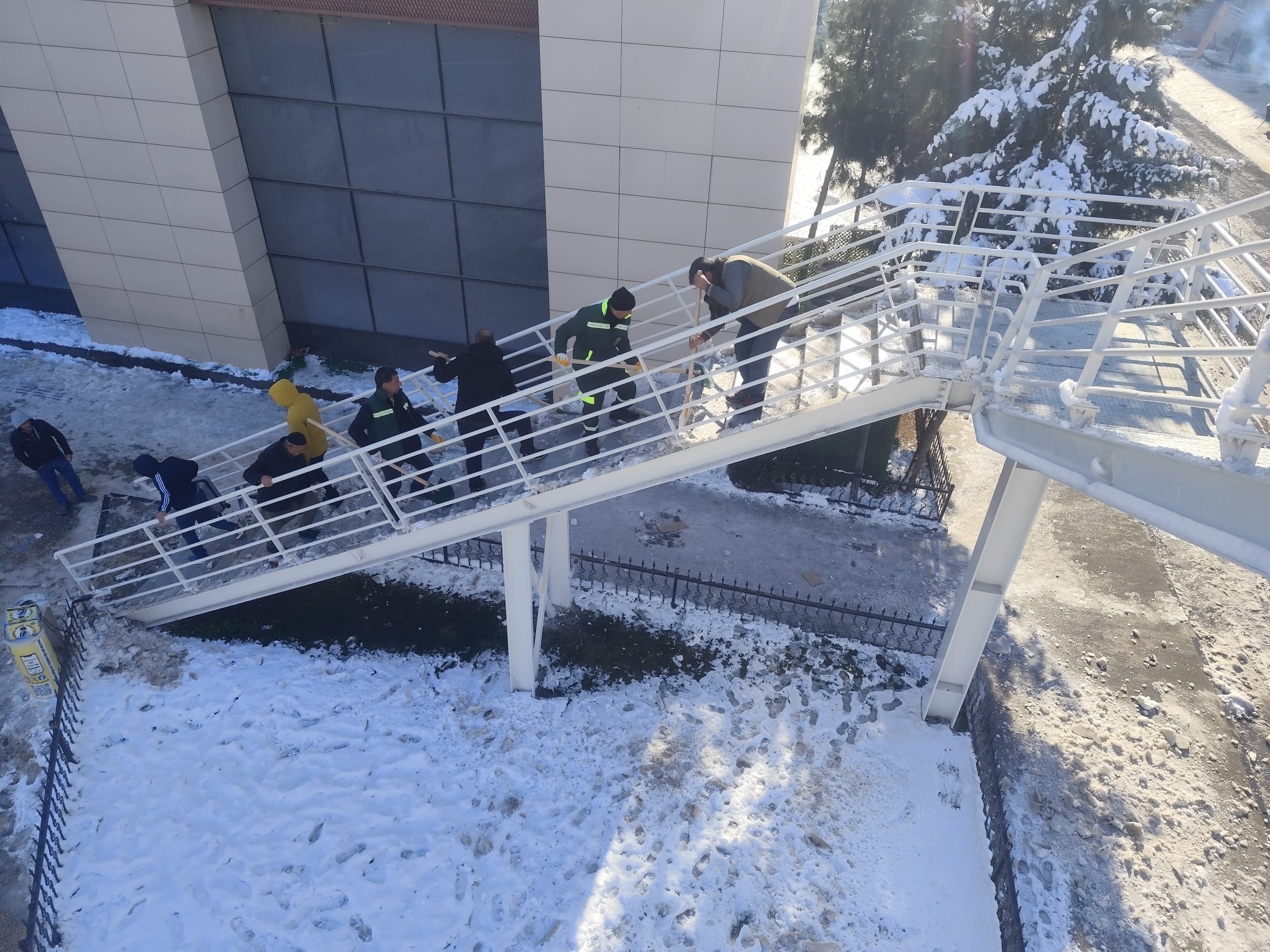 Ji bo rakirina qeşagirtina ku li ser peyarê, rêyên peyayan, serborî, qadên parkan û li ber nexweşxaneyan çêbûne, tîm ji saetên serê sibê ve li qadê wezîfe girtin. Kerên cemedê yên ku ji bo peyayan rîsk çêdikirin bi bêran hatin şikandin û paqijkirin; her wiha ji bo pêşî li qeşagirtina nû bê girtin, li ser peyarêyan xebatên xwêkirinê jî hatin kirin.