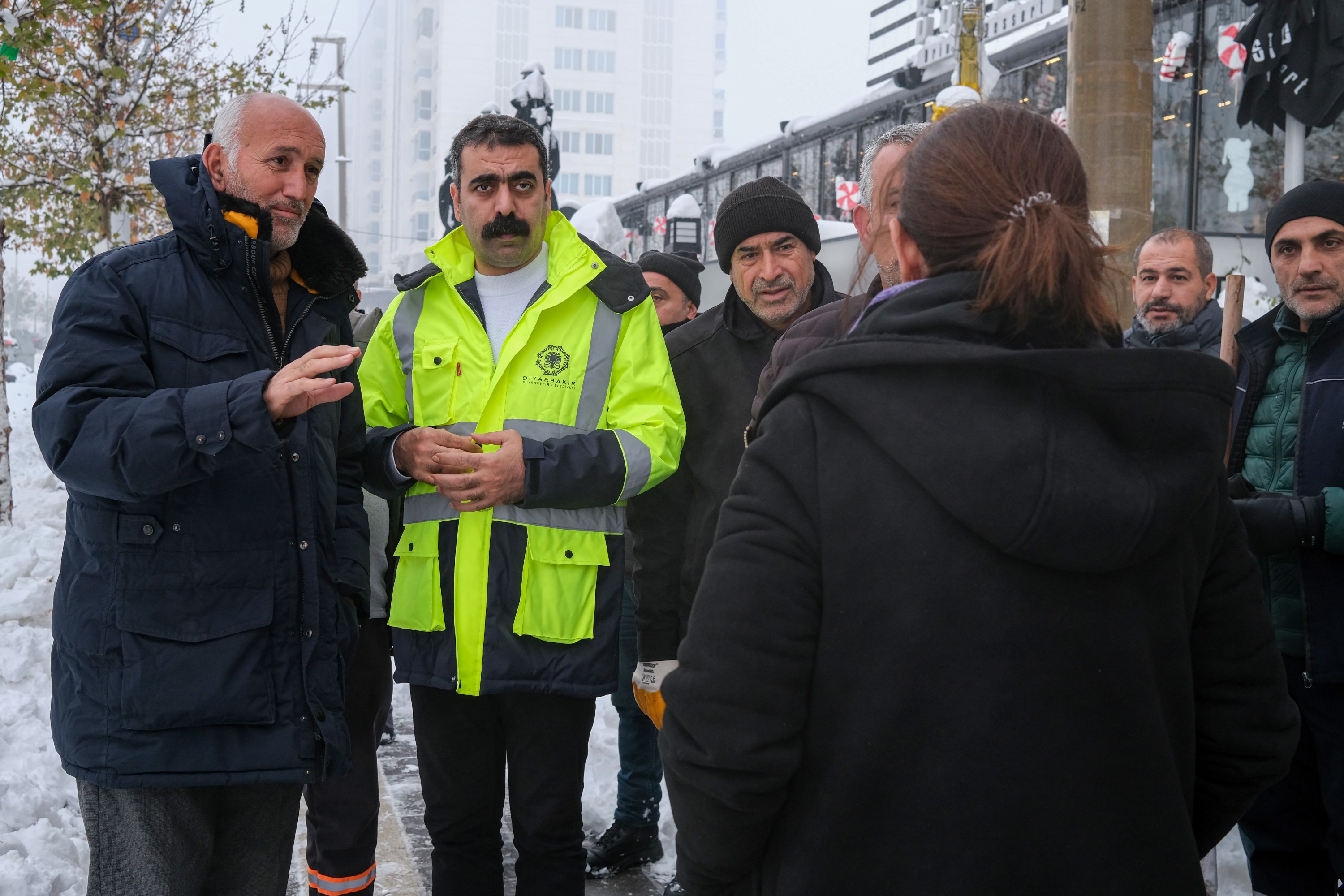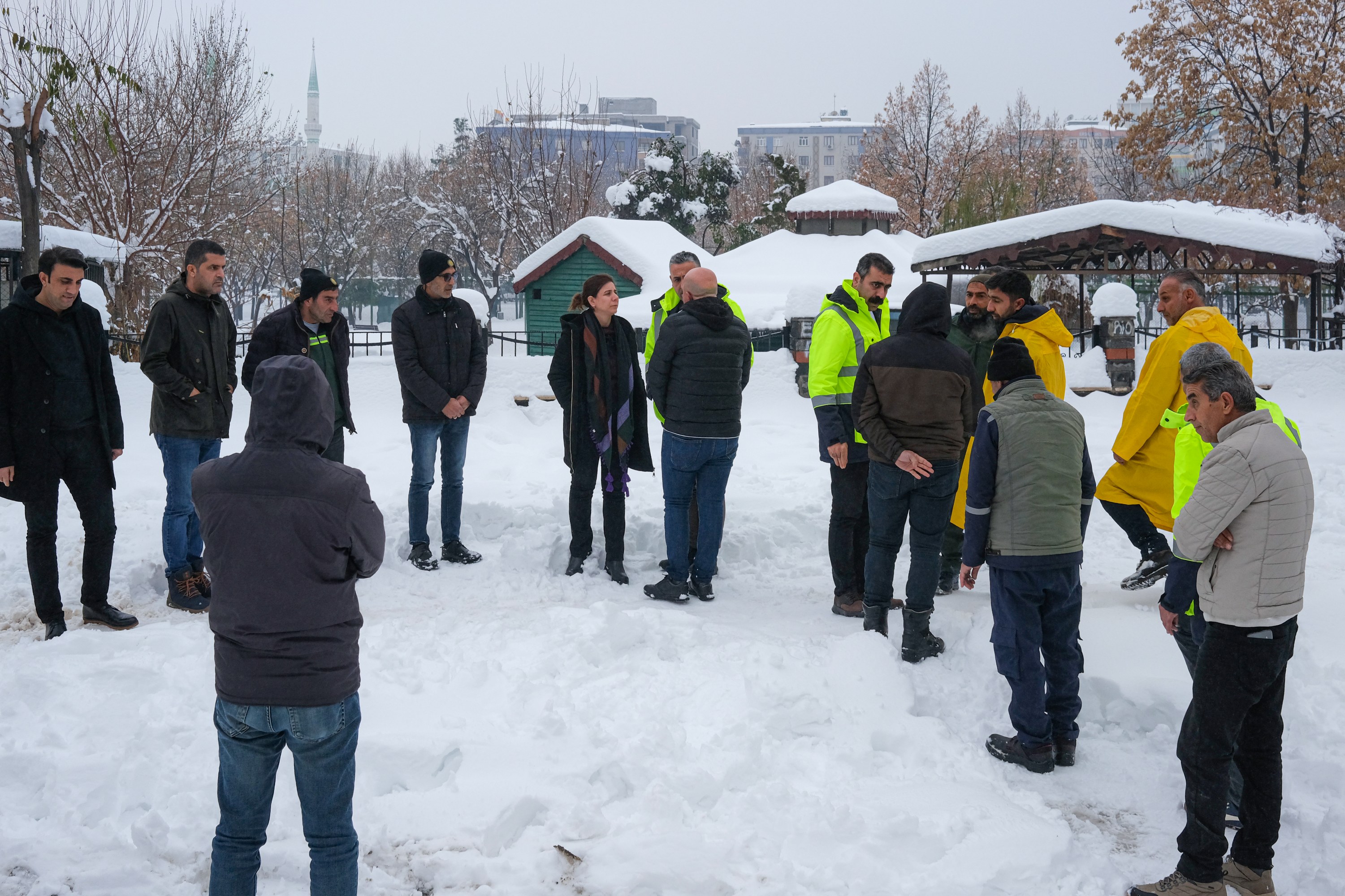 Hevşaredarên ku di roja yekem a salê de ji saetên sibê ve derketin qadê, xebatên têkoşîna li dijî berfê di cih de dîtin û ji tîman agahî girtin. Hevşaredaran; li gelek xalên navçeyên Kayapinar, Yenîşehir û Baglarê xebatên ku berdewam dikin kontrol kirin.
