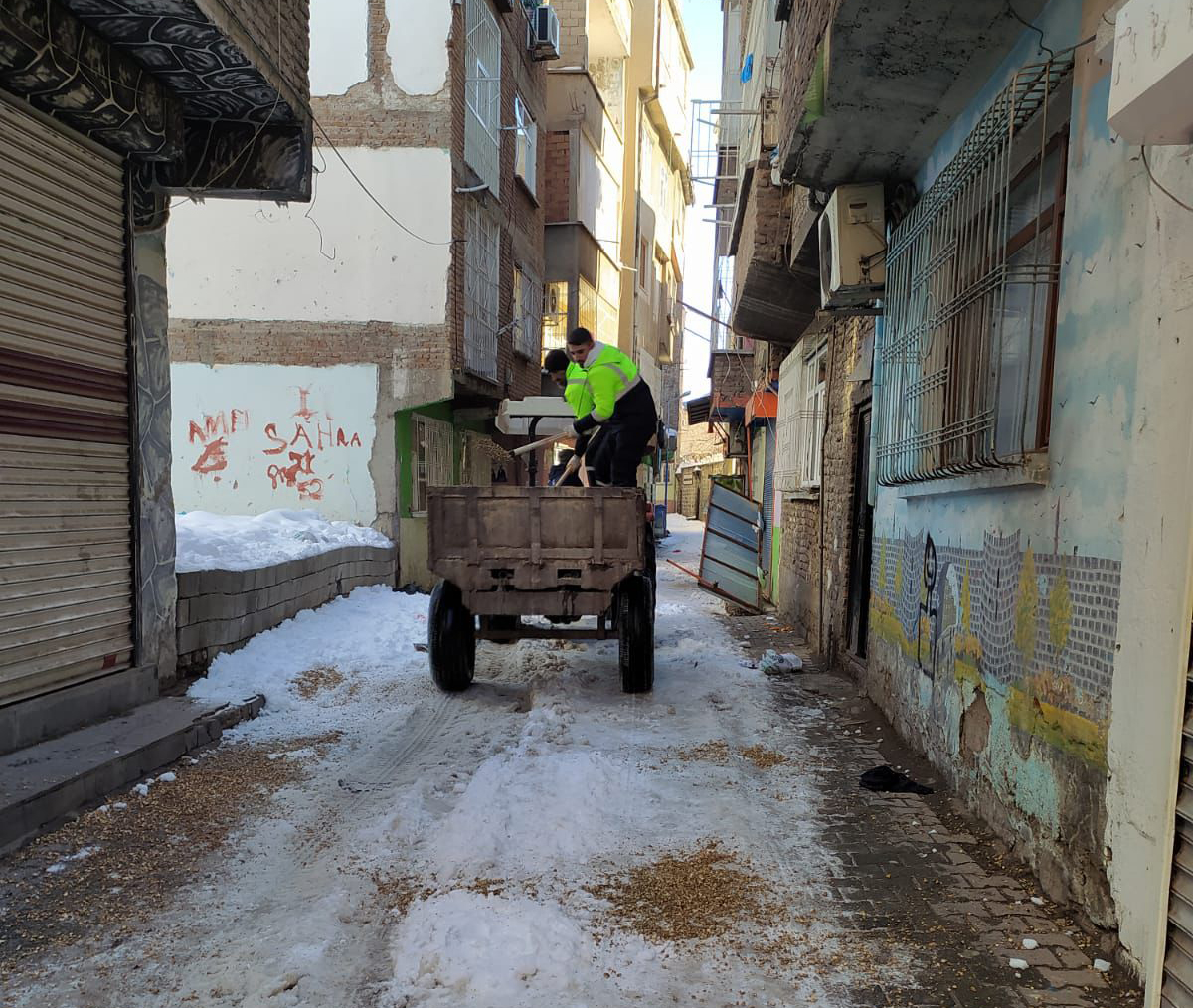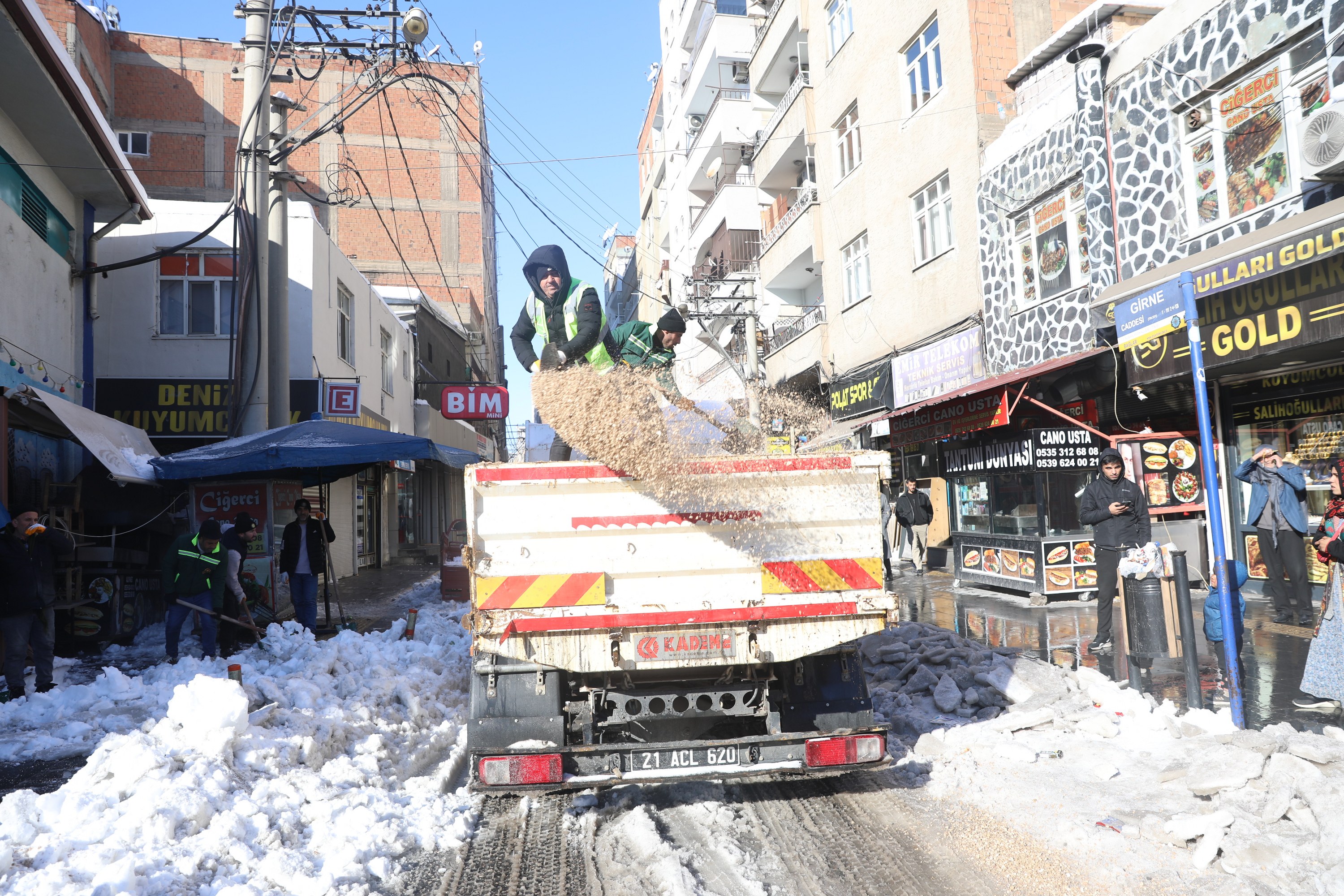 Şaredariya Bajarê Mezin a Amedê, di çarçoveya koordînasyona ku bi şaredariyên navçeyan re li dijî berf û qeşaya ku li seranserê bajêr bi bandor bûye de, xebatên têkoşîna li dijî berfê bênavber didomîne. Di vê çarçoveyê de ji Serokatiya Daîreya Parastin û Kontrolkirina Jîngehê, Serokatiya Daîreya Park û Baxçeyan, Serokatiya Daîreya Çêkirin û Tamîrkirina Rêyan, Serokatiya Daîreya Karên Tenduristiyê û ji şaredariyên Kayapinar, Sûr, Rezan (Baxlar) û Yenîşehirê tîmeke ji 1120 kesan pêk tê, li seranserê bajêr xebateke dijwar dimeşînin.