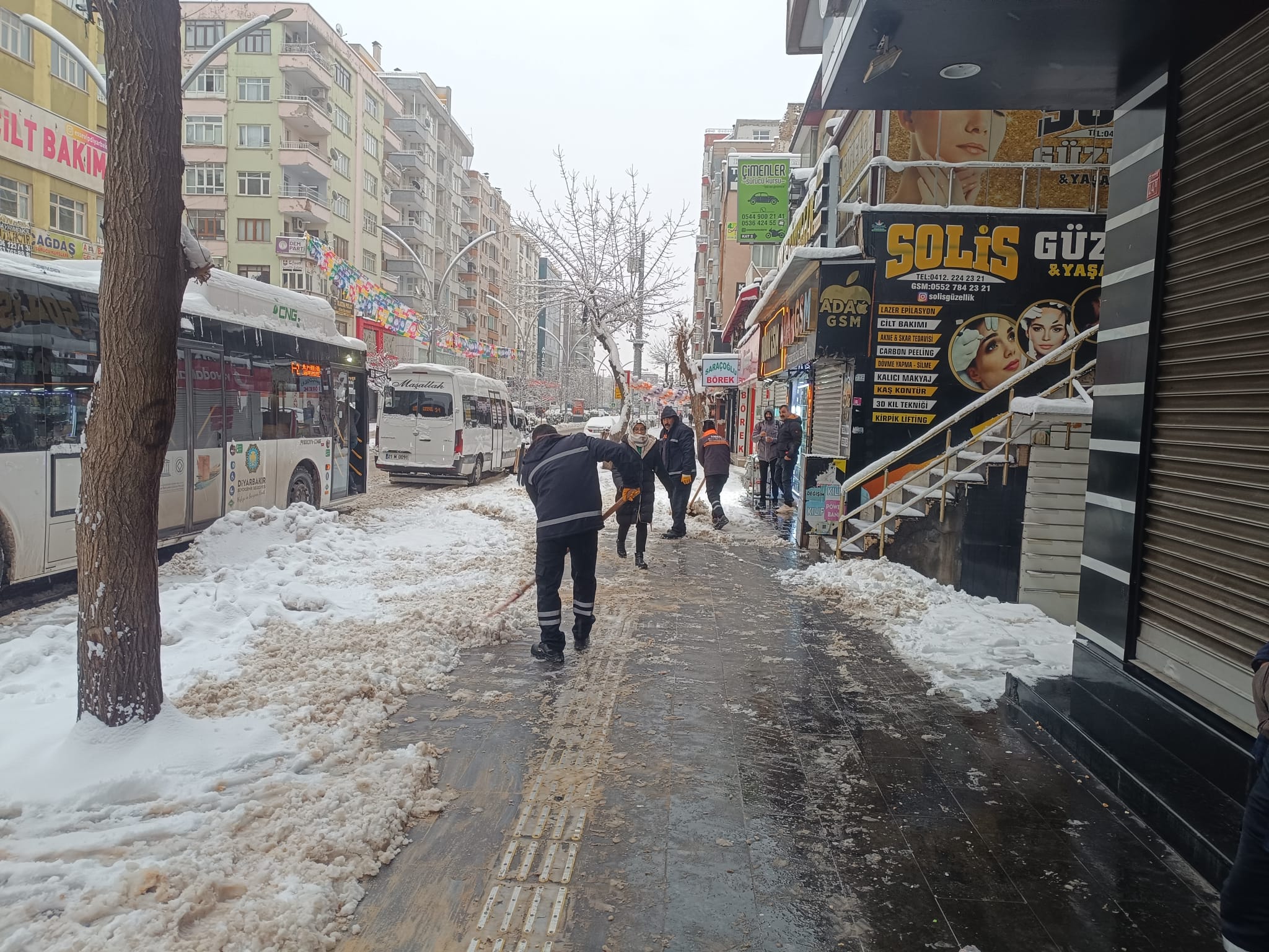 Ekîb li kolan û bulvarên sereke yên navenda bajêr xebatên berfmalîn û xwêkirinê didomînin. Bi taybetî li dijî qeşagirtina ku bi daketina pileyên germê re çêdibe, xebatên xwêkirinê hatin zêdekirin. Xebat bi awayekî koordîne têne meşandin da ku veguhestin neyê sekinandin.