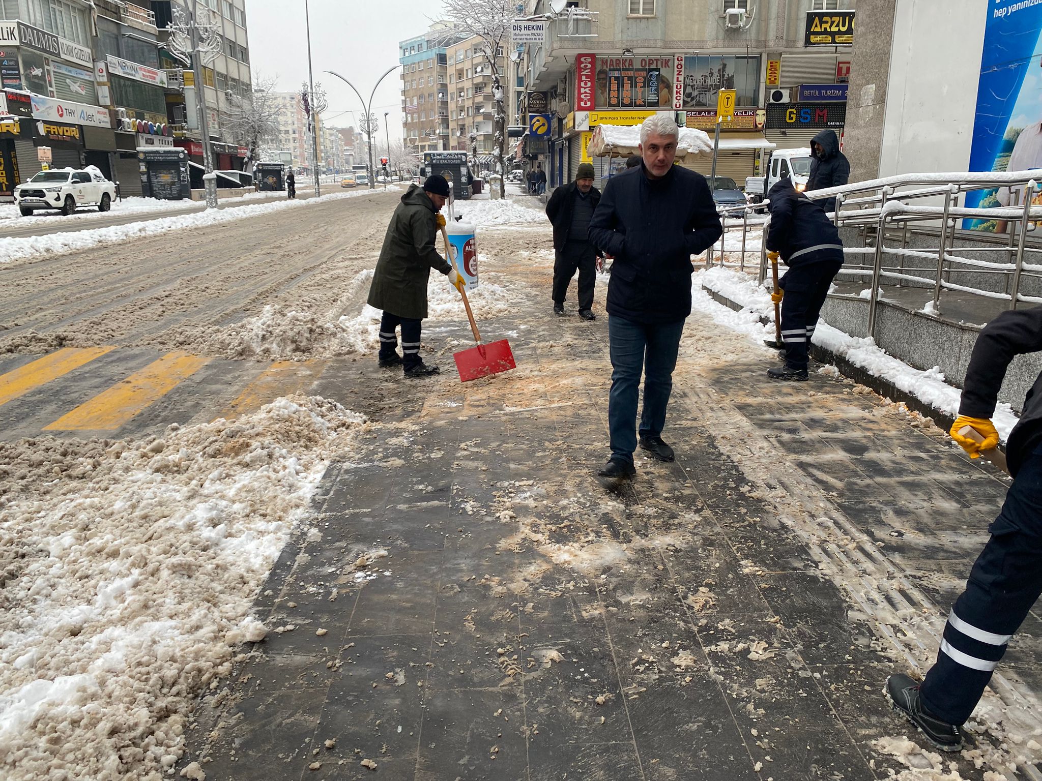 Berfîkên berfê yên ku Hevşaredarên Şaredariya Bajarê Mezin a Amedê Serra Bucak û Dogan Hatun berê li esnafan belav kiribûn, di van rojên berfê de li qadê hatin bikaranîn. Gelek esnafên li navenda bajêr, ji bo piştgiriya xebatên şaredariyê, berfa ber deriyê kargehên xwe bi wan berfîkan paqij kirin. Ev helwesta piştevanî ya esnafan hem piştgirî da ewlehiya peyayan hem jî xebatên şaredariyê xurttir kir.