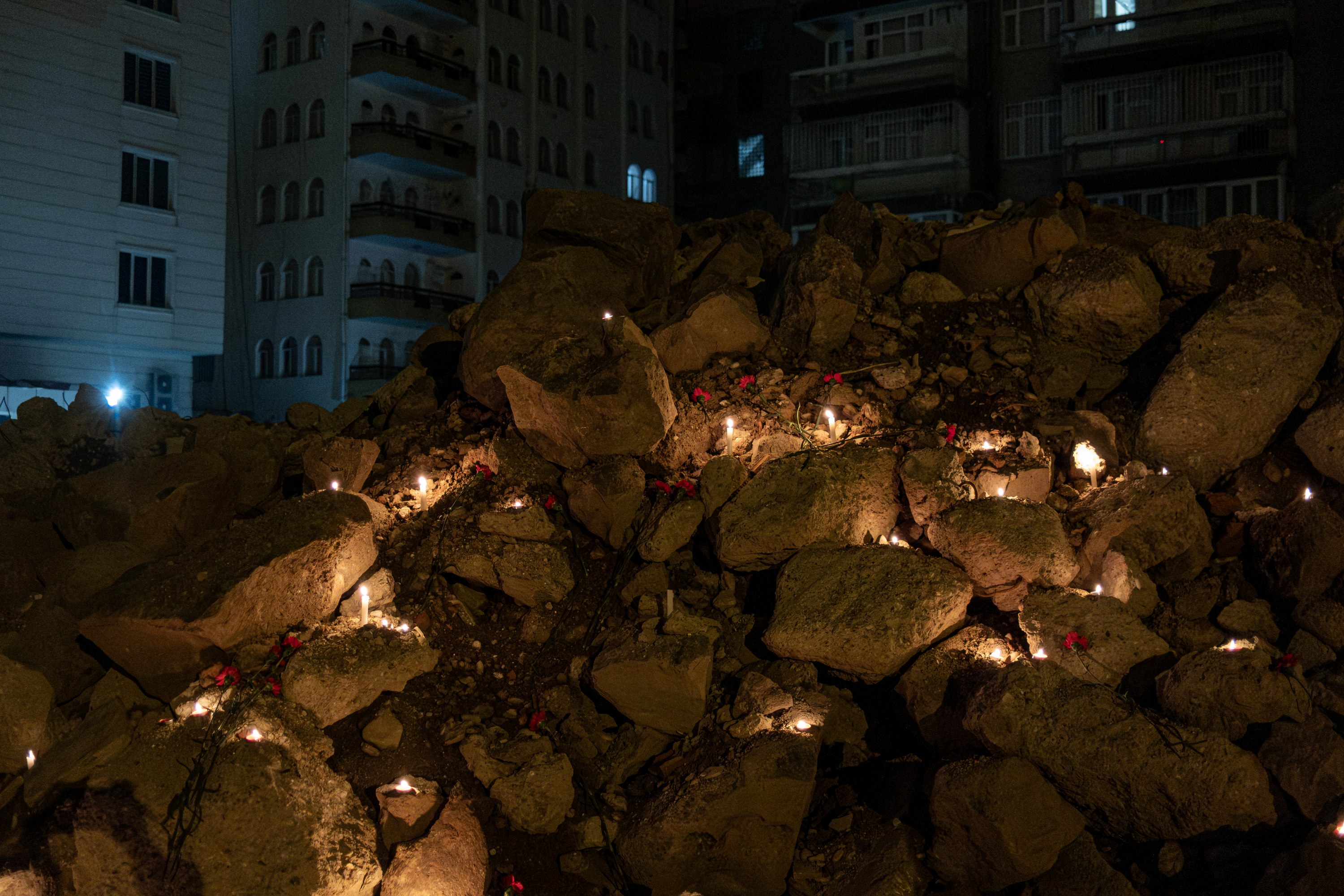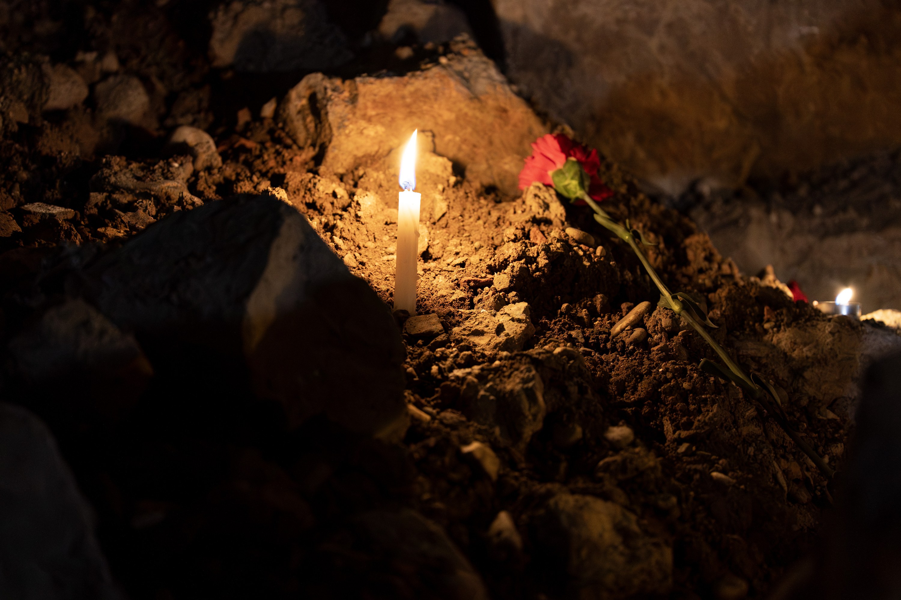 Di bîranîna ku di saet 04.17’an de, ango di wextê erdhejê de pêk hat, li qada enkazê find hatin vêxistin û qerenfîl hatin danîn.