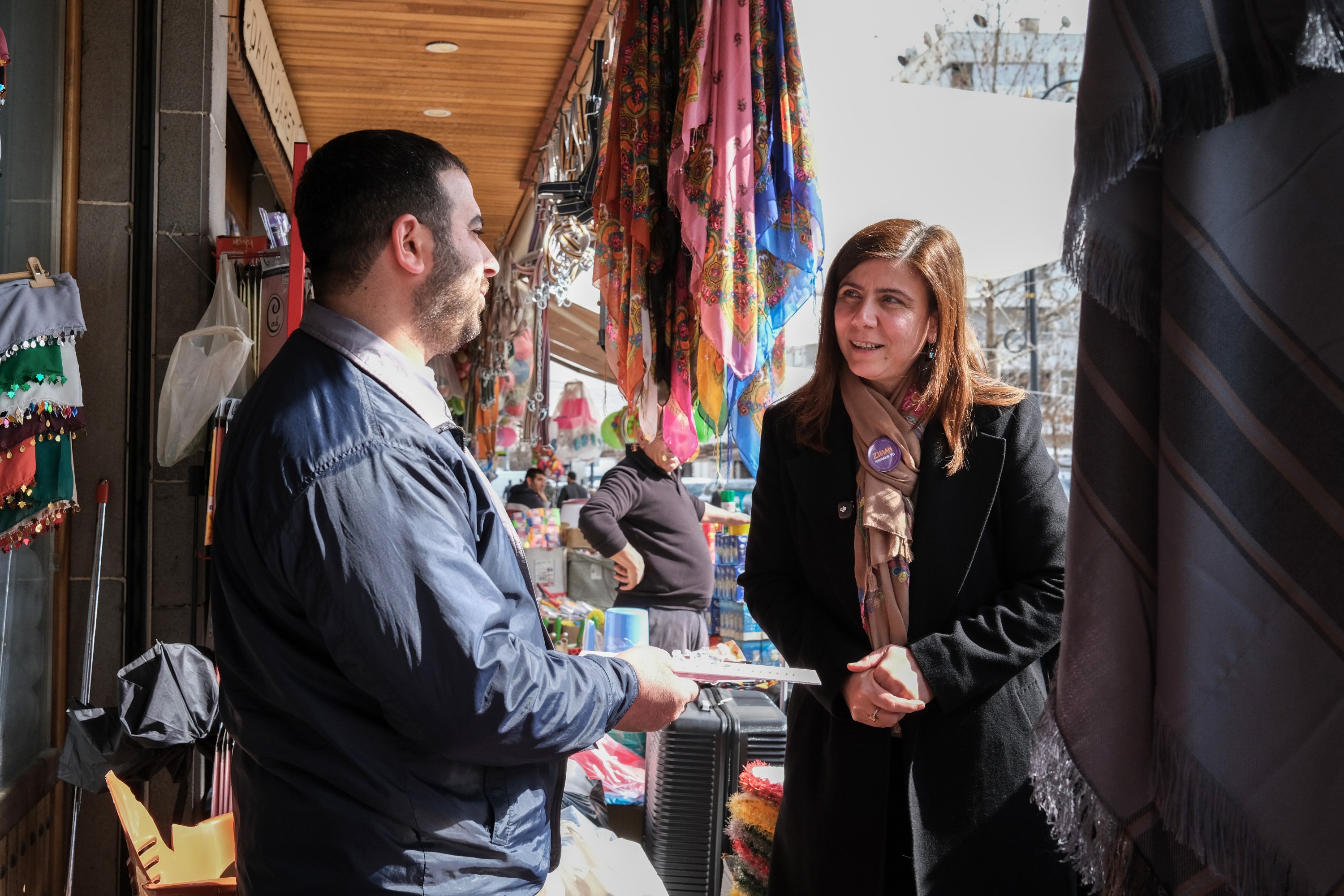Hevşaredara Bajarê Mezin a Amedê Serra Bucak, di çarçoveya 21ê Sibatê Roja Zimanê Dayikê yê Cîhanê de li Sûrê serdana esnafan kir û bal kişand ser xuyabûna zimanên dayikê di qada giştî de.