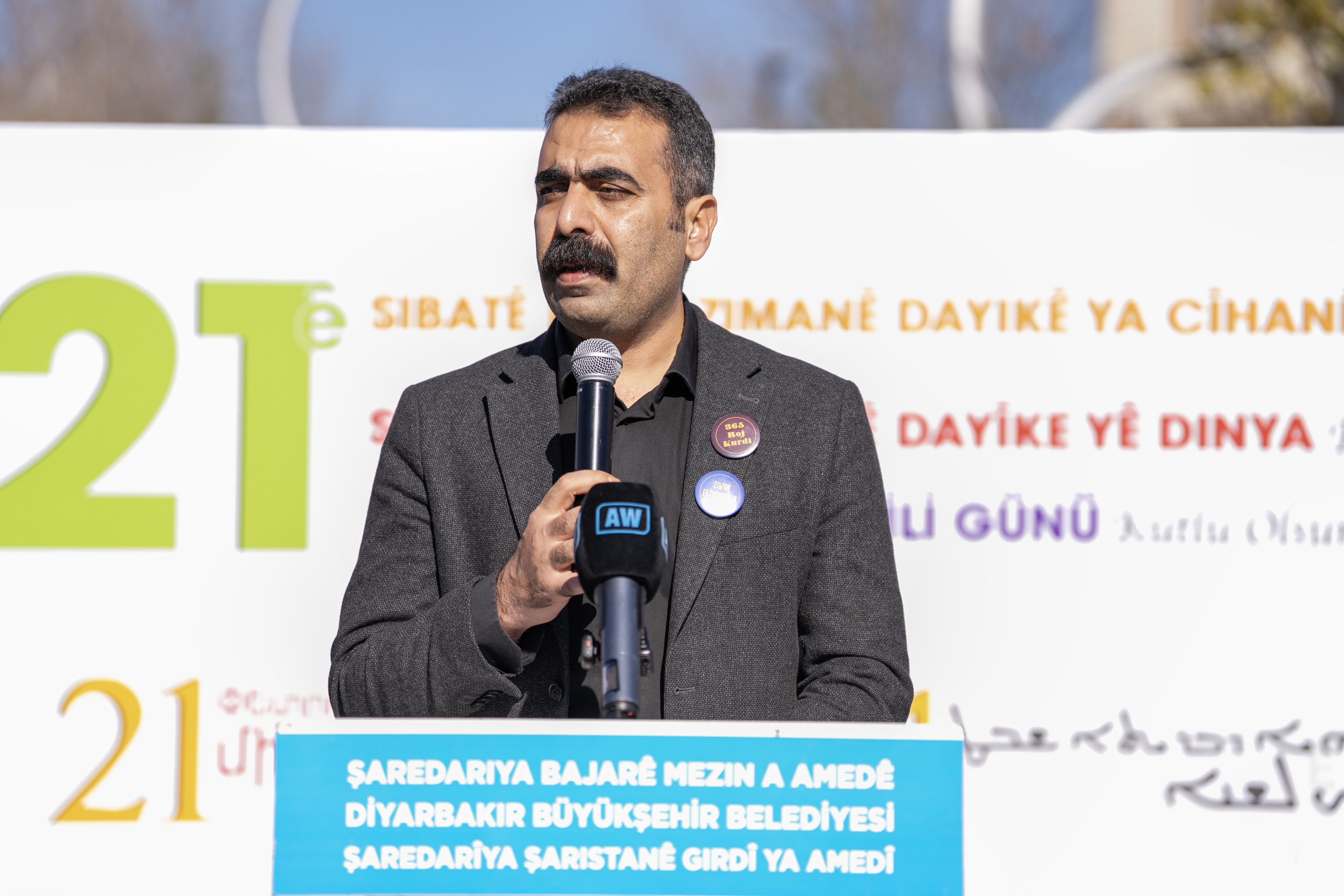 “Wekî tê zanîn di vî welatî de di fermiyetê de tenê zimanek heye. Me îro di vê parkê de behsa 10 zimanên ku di bin xetereya windabûnê de ne kir. Ev xebateke berfireh e. Me her kolana vê parkê bi reng û dengê zimanekî xemiland; me navê her zimanekî da her kolanê û tabelayên wê bi peyvên wî zimanî nivîsandin. Banga me ya wekî şaredariyên Amedê ji bo hemû gelên ku zimanê wan bi xetereya windabûnê re rû bi rû ye ev e: Divê xwedî li zimanê xwe derkevin. Em bang li berpirsiyaran jî dikin; hemû ziman birûmet in. Di welatekî de çiqas ziman hebin, ew welat ewqas dewlemend e û çanda wî ewqas kûr e. Heke hûn tenê zimanekî biparêzin, hûn dewlemendiya çandî, hunerî û zimanî ya wî welatî qut dikin; hûn deng û rengên cihêreng ên welat ditepisînin. Ev park dikare ji bo hemû Tirkiyeyê bibe mînakeke bedew a pirrengî û pirzimaniyê.”