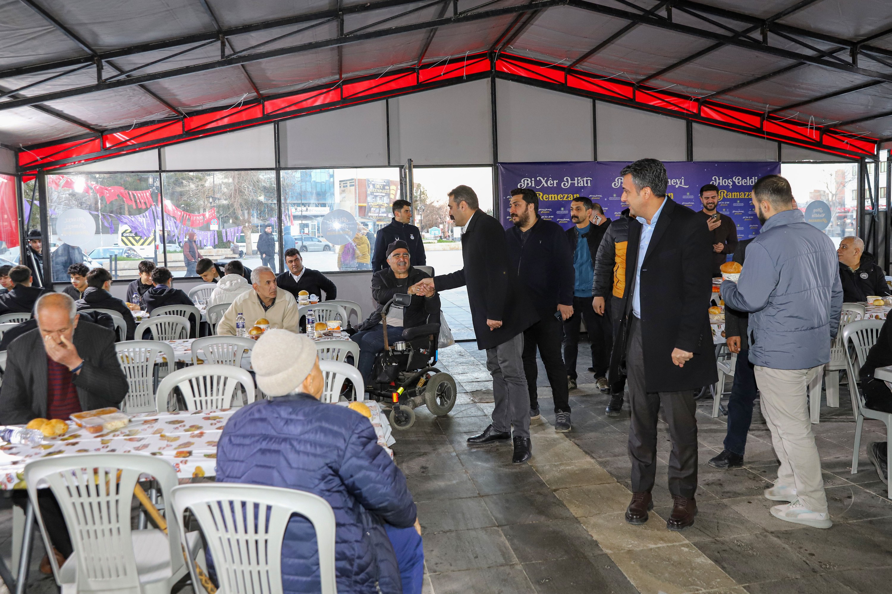Hevşaredara Bajarê Mezin Serra Bucak, li konê fitarê yê li Parka Mala Tenûrê ya navçeya Rezanê bi welatiyan re hat cem hev; Hevşaredar Dogan Hatun jî beşdarî bernameya fitarê ya li Meydana Deriyê Çiyê bû. Hevşaredarên ku beriya fitarê yek bi yek silav dan welatiyên ku kon dagirtibûn, li ser maseyan geriyan û sohbet kirin, daxwaz û pêşniyarên wan guhdar kirin.