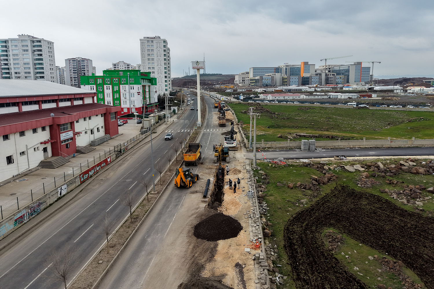 Rêveberiya Giştî ya DÎSKÎ ya Şaredariya Bajarê Mezin a Amedê, ji bo binesaziya Nexweşxaneya Bajêr a ku avakirina wê berdewam dike, xebatên kanalîzasyon û xetên ava baranê li qadê bi hev re dimeşîne. DÎSKÎ amadekariyan dike ku beriya nexweşxane bikeve ber xizmetê, binesaziyeke bi hêz û têrker ava bike. Proje li gorî daxwaza zêde ya di paşerojê de hatiye plankirin.