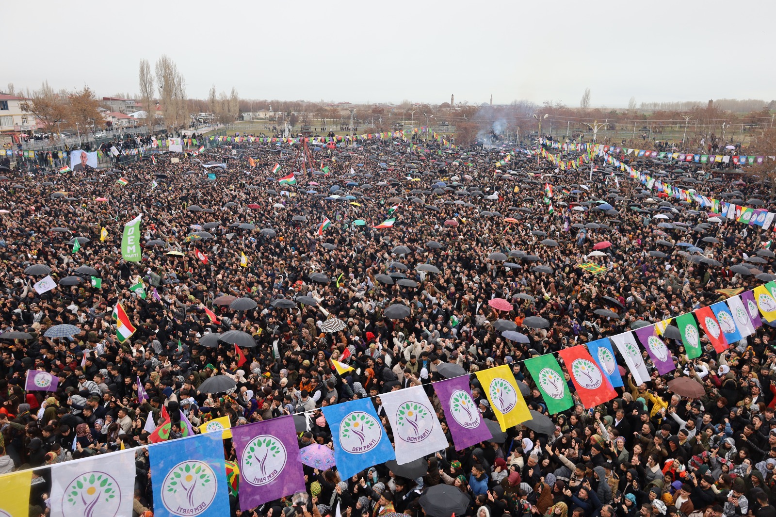 Hevşaredarên Şaredariya Bajarê Mezin a Amedê Serra Bucak û Dogan Hatun, tevî Hevserokê Giştî yê Partiya Wekhevî û Demokrasiyê ya Gelan (DEM Parti) Tuncer Bakirhan û Hevşaredarên Şaredariya Bajarê Mezin a Wanê Neslihan Şedal û Abdullah Zeydan ku li şûna wan qeyûm hatibûn wezîfedarkirin, beşdarî pîrozbahiya li binê Kela Wanê bûn.