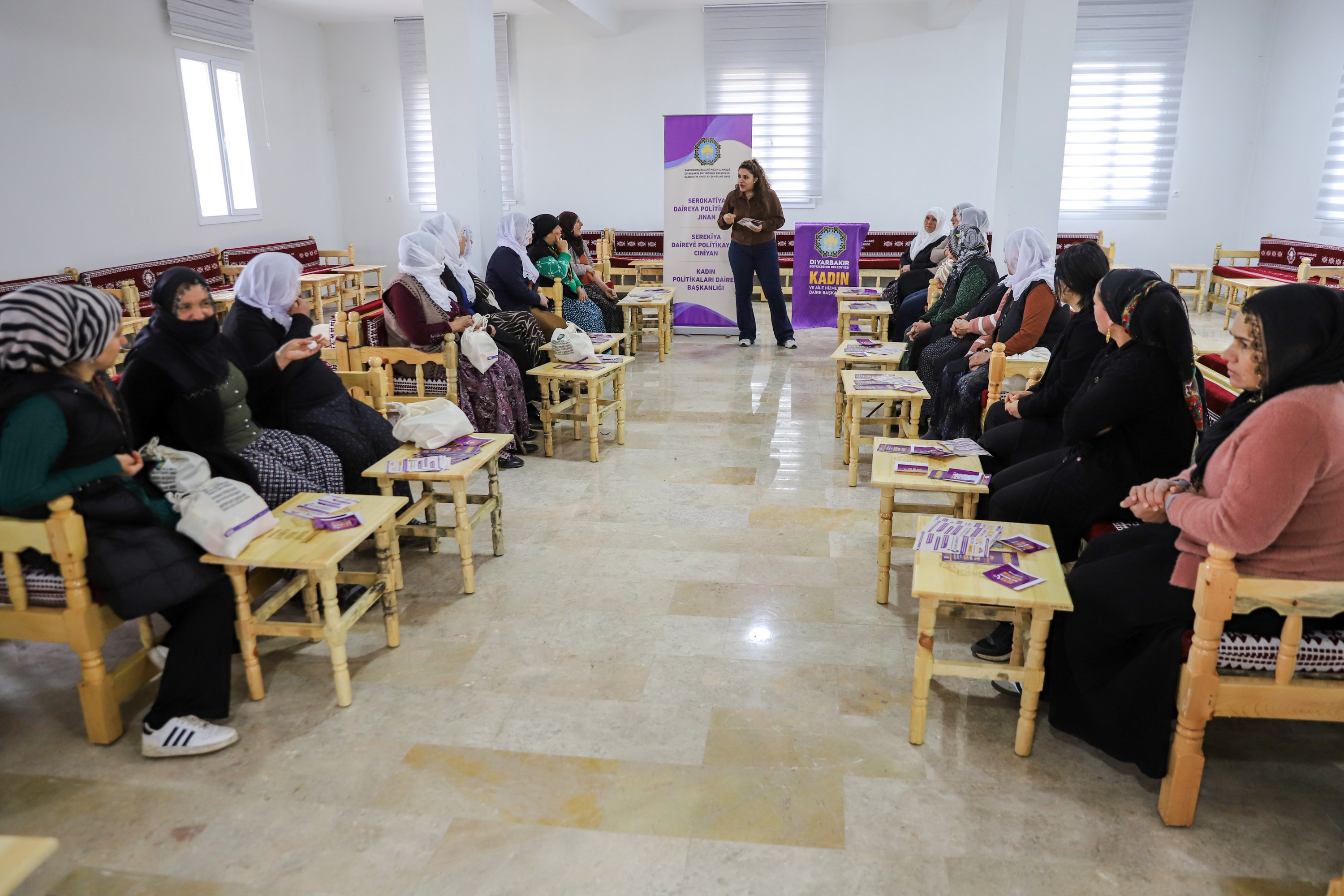 Her wiha der barê xebatên Navenda Lêkolîn û Sepandina Pirsgirêkên Jinan a Amedê (DÎKASUM) de agahî hatin dayîn û mekanîzmayên piştgiriyê û xizmetên ku jin dikarin serî lê bidin bi hûrgulî hatin veguhastin.