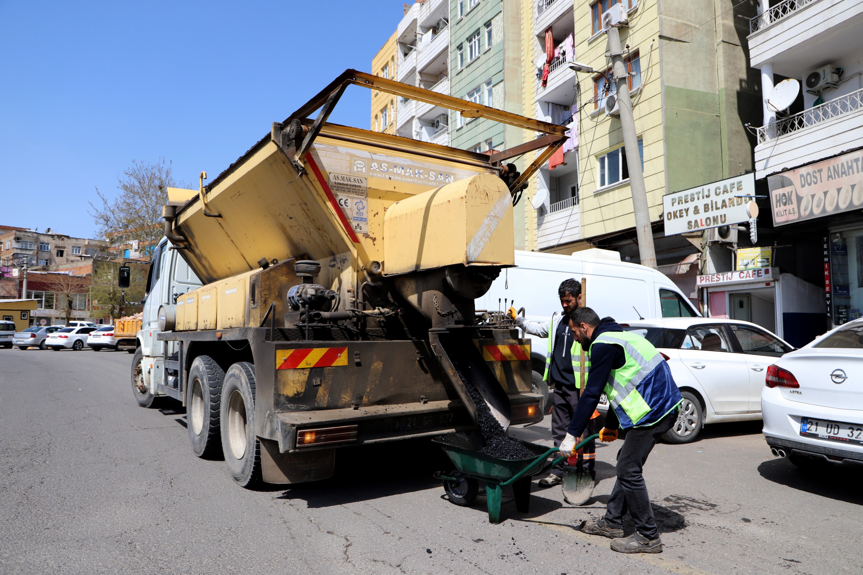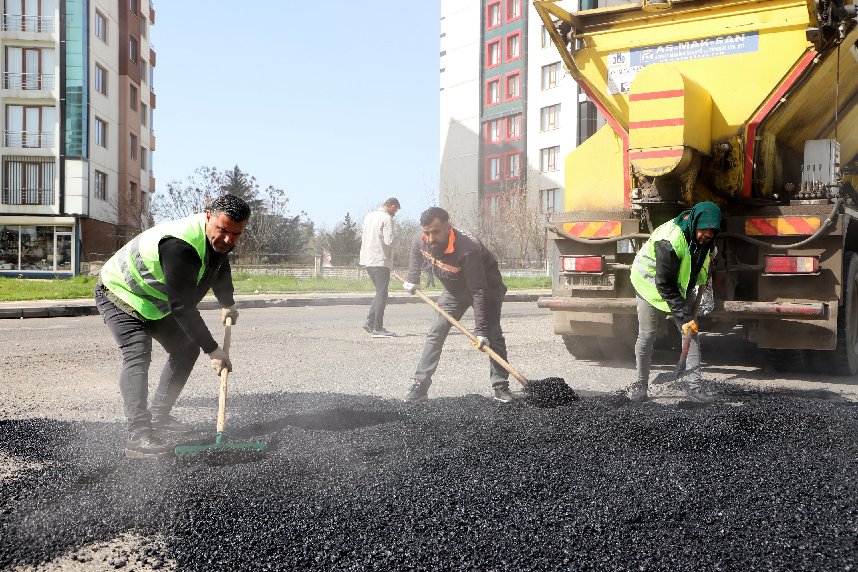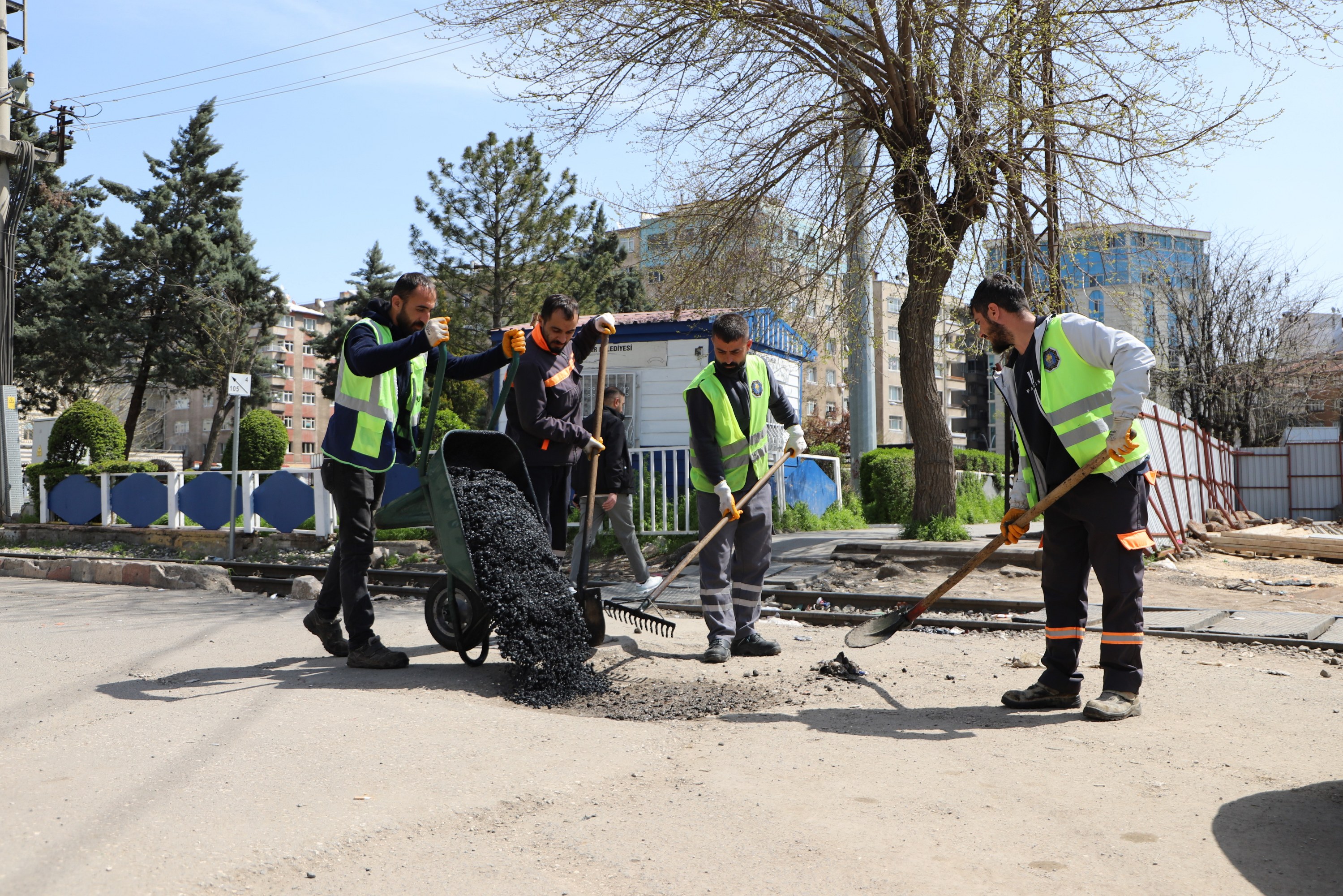 Serokatiya Daîreya Çêkirin, Lênihêrîn û Tamîrkirina Rêyan, ji bo çareserkirina deformasyonên rêyan ên ku li seranserê bajêr ji ber baran û guherîna germahiyê çêbûne, li navçeyên Rezan (Baglar), Peyas (Kayapinar), Sûr û Bajarê Nû (Yenişehir) xebatên xwe didomîne.