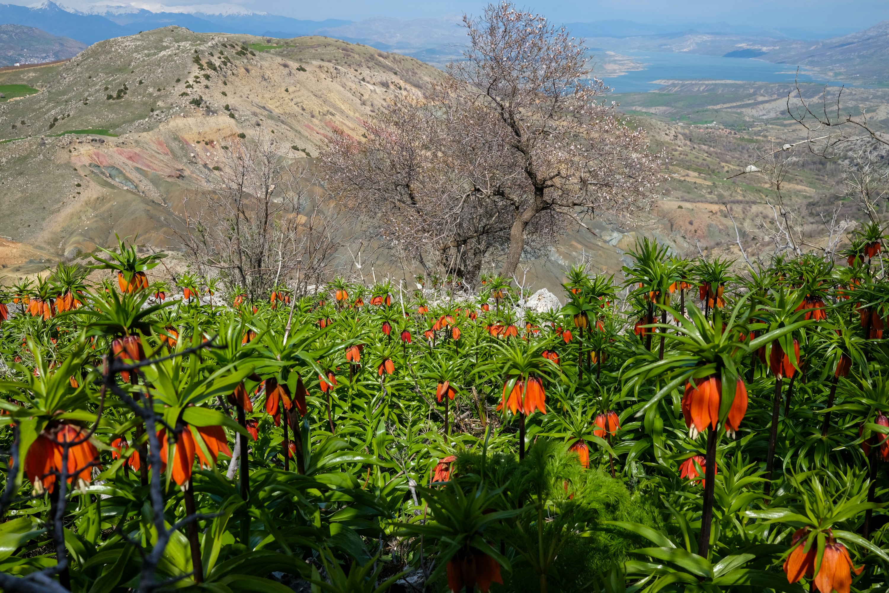 Çiyayê Meqamê Zulqêf yê li navçeya Erxeniyê, bi guldexwînên ku di nav zinaran de şîn dibin, bihara xwezayê vediguherîne şahiyeke dîtbarî.