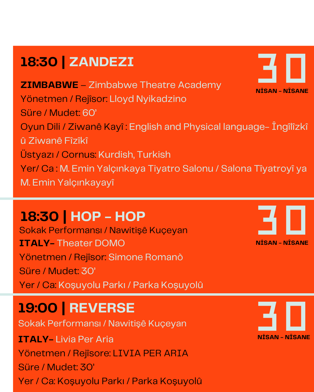 11emîn Festîvala Şanoyê ya Navneteweyî ya Amedê ku ji aliyê Şanoya Bajêr a Şaredariya Bajarê Mezin (ŞBŞM) ve bi temaya “Ji bo Aştiyê Diyalog” tê organîzekirin, di 22yê Nîsanê de dest pê dike. Festîvala ku dê heta 2yê Gulanê berdewam bike, komên şanoyê yên ji welatên cuda dê li Amedê derkevin ser dikê.