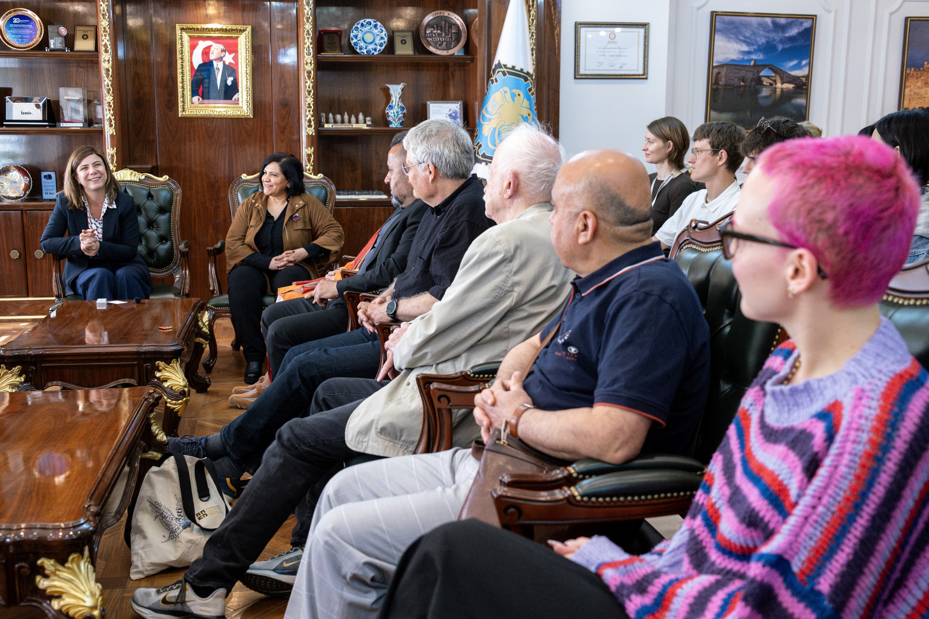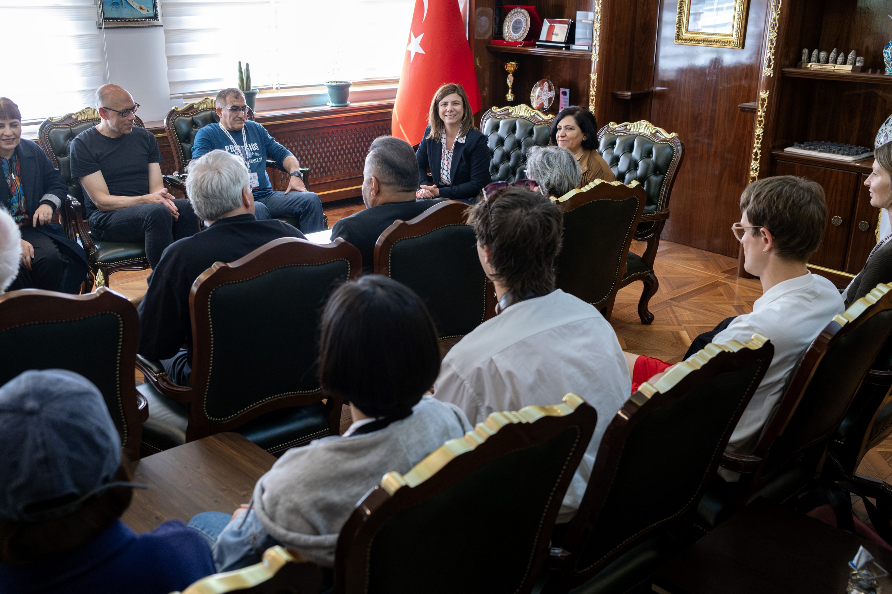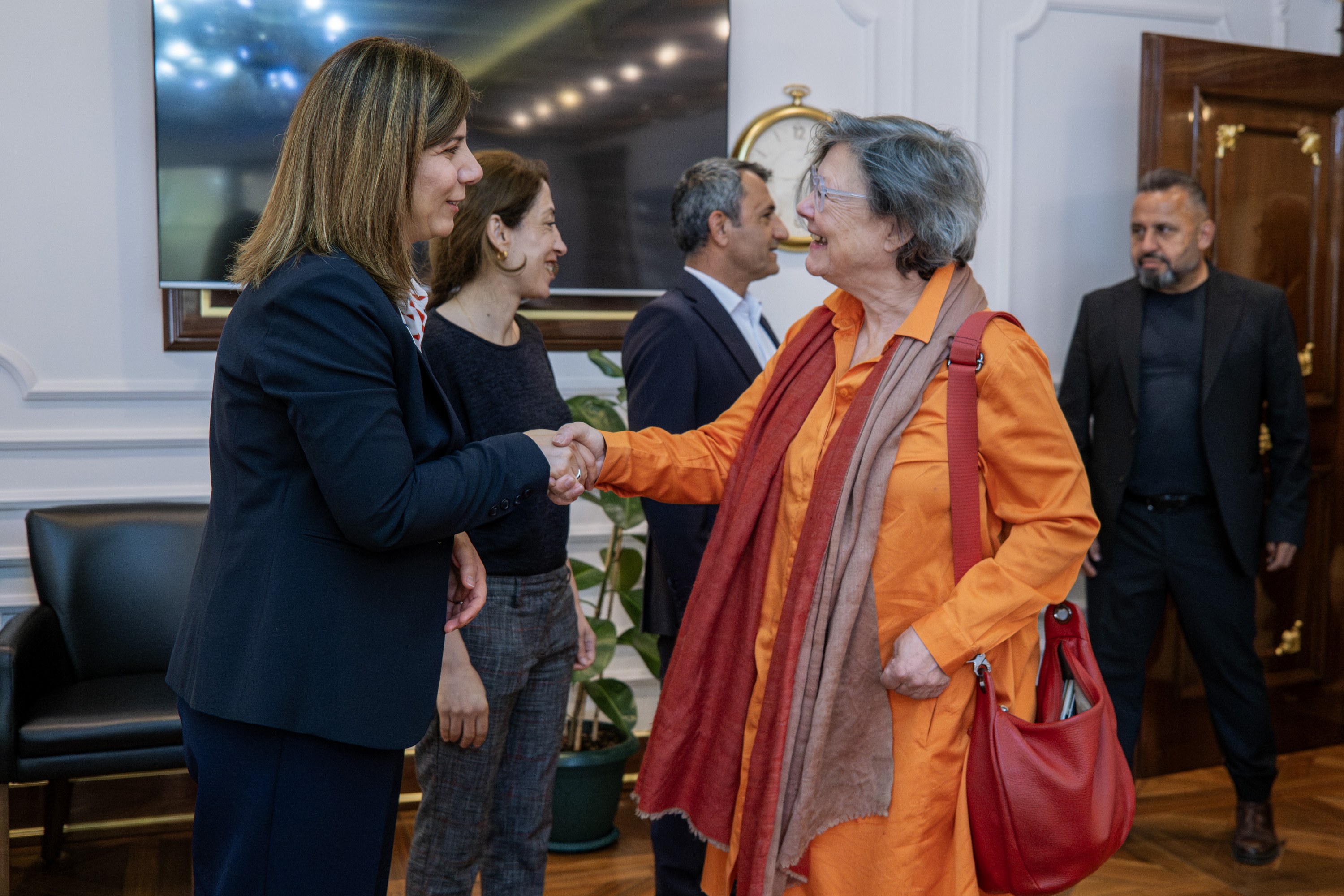 Di serdanê de, Alîkara Sekreterê Giştî ya Şaredariya Bajarê Mezin Muhabbet Erdogmuş, Seroka Daîreya Karên Çand, Huner û Civakî Zeynep Yaş û endamên meclîsa şaredariyê jî pêşwaziya Hevşaredar Bucak kirin û di hevdîtinê de amade bûn.
