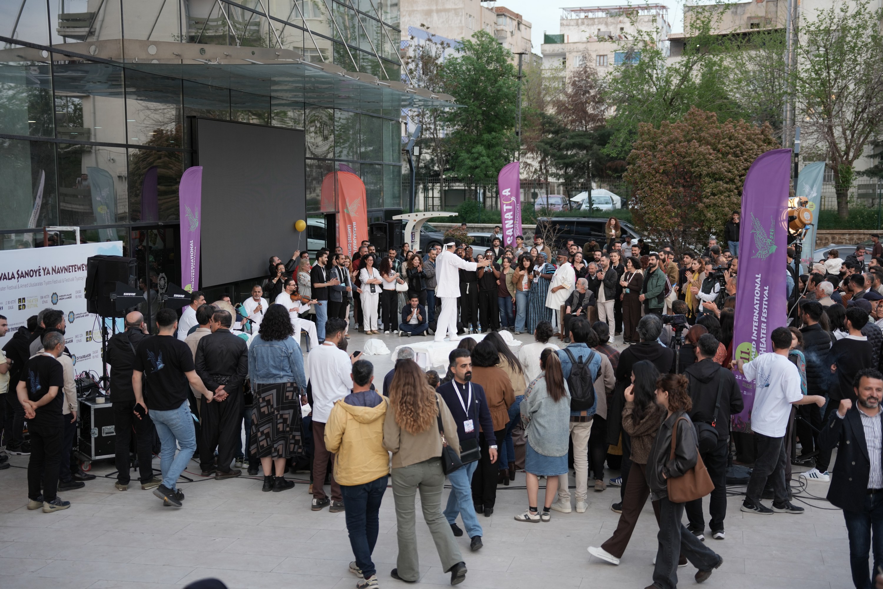 11. Festîvala Şanoyê ya Navneteweyî ya Amedê, di roja xwe ya çaremîn de bi pêşandanên li derveyî salonan û mînakên berbiçav ên şanoya bêpeyv, temaşevan bi ezmûnên şanoyê yên cuda re anî ba hev.