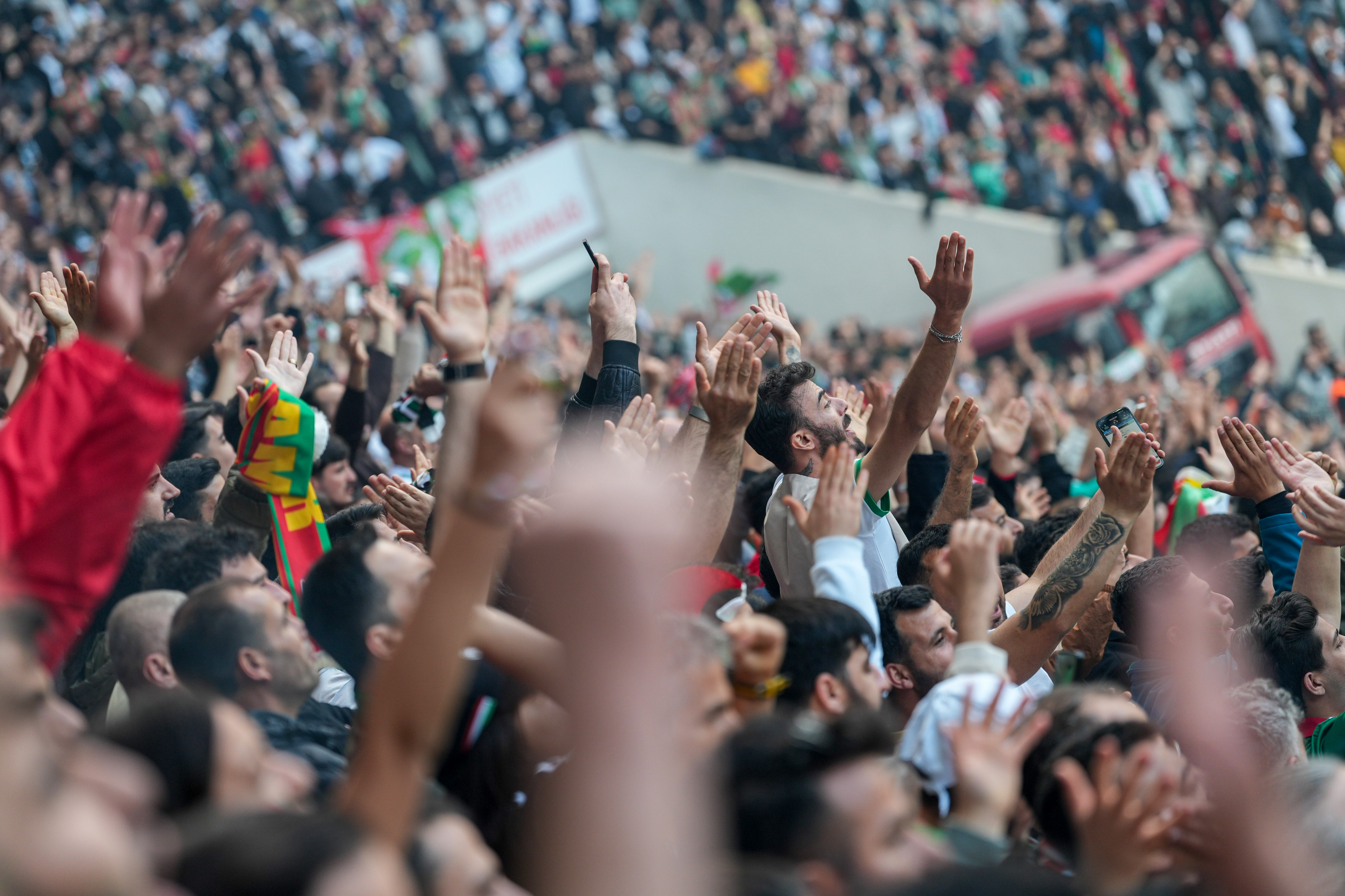 Hevşaredara Şaredariya Bajarê Mezin a Amedê Serra Bucak, maça Amedspor–Bodrumsporê ya ku li Stadyuma Amedê hat lîstin; ligel Serokê Klûba Amedsporê Nahîd Eren, parlamenter, hevşaredarên navçeyan, nûnerên rêxistinên civaka sivîl û alîgiran temaşe kir.