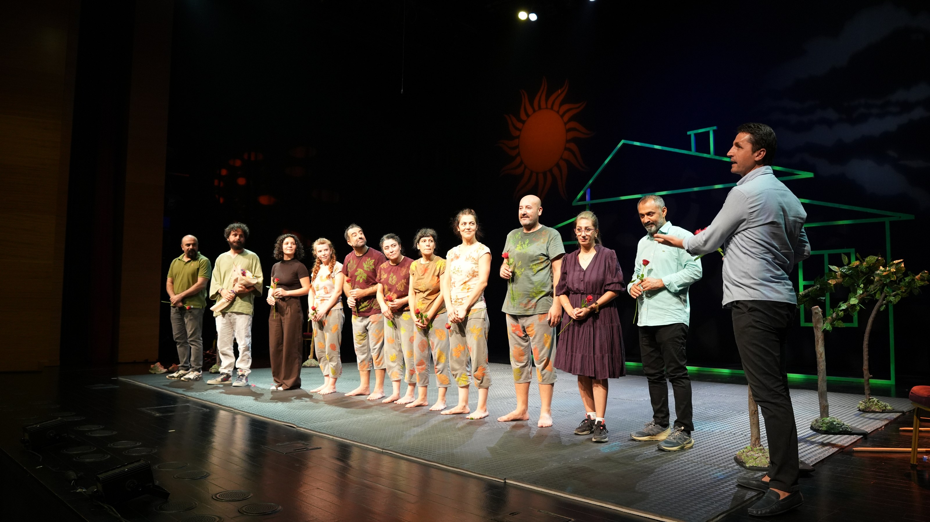 Oyunu izleyen Kültür ve Sosyal İşler Dairesi Başkanlığı Dil Koruma Şube Müdürü Tahir Baykuşak ekibe çiçek vererek tebrik etti. Oyunculardan Ömer Şahin de katılımlarından dolayı izleyicilere teşekkür etti.