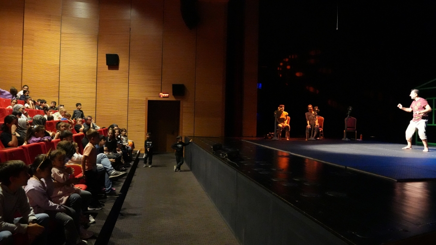 Diyarbakır Büyükşehir Belediyesi Şehir Tiyatrosu (DBŞT) oyuncuları, “Hişê min Tev Li Hev Bû (Aklım Karıştı)” adlı oyununun prömiyerinde çocuklarla buluştu.