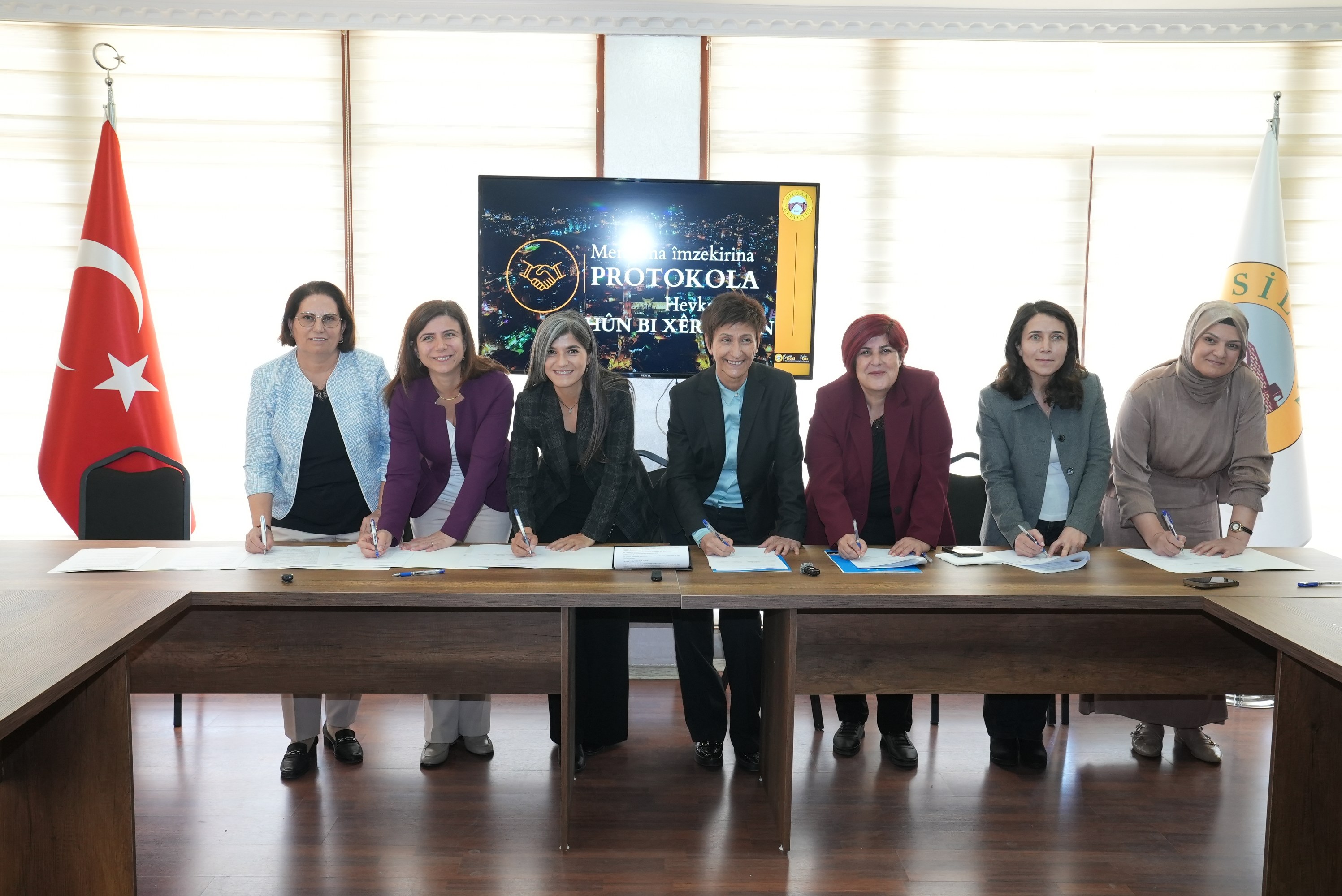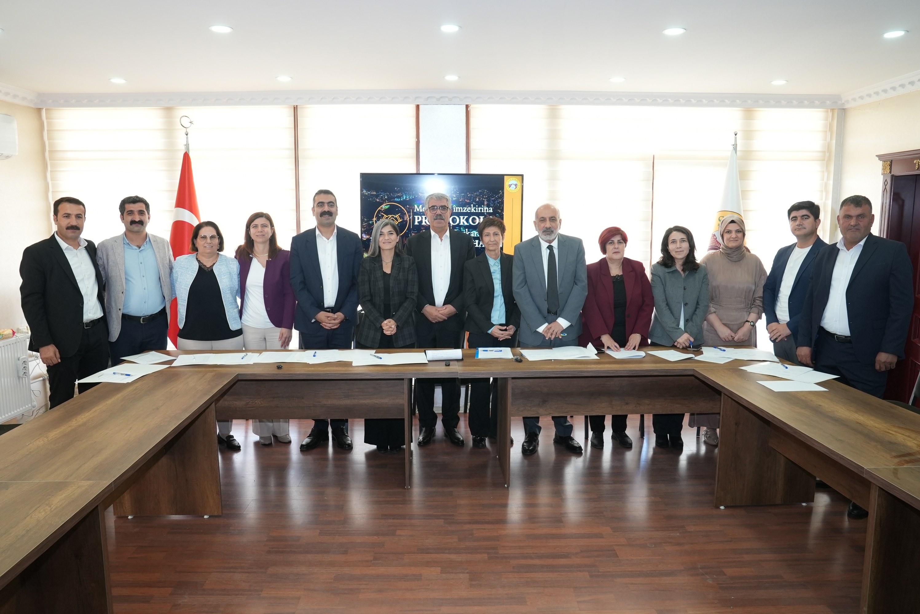 Büyükşehir Belediyesi Eşbaşkanları Serra Bucak ve Doğan Hatun, bu kapsamda iş birliği yapan kurumların temsilcileriyle Mandıra Tesisi Kurulum Protokolü imza töreni gerçekleştirdi.