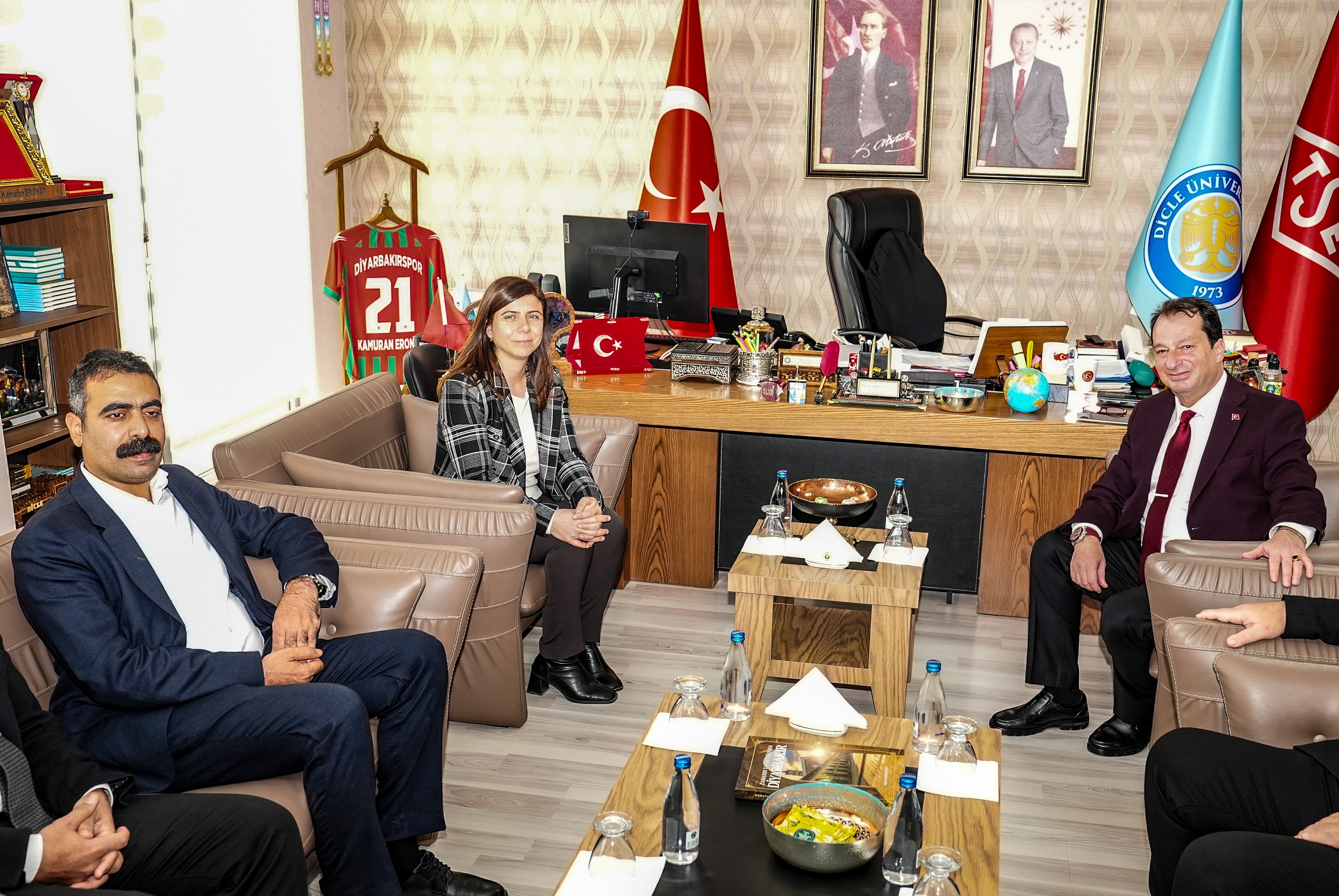 Rektör ve rektör yardımcısı tarafından karşılanan Eşbaşkanlar, üniversite yönetimi ile kısa bir görüşme gerçekleştirdi. Ardından Büyükşehir Belediyesi Eşbaşkanı Bucak ile Rektör Eronat arasında protokol imzalandı. Eşbaşkan Bucak, imza attıktan sonra protokolün kente hayırlı olması temennisinde bulundu.