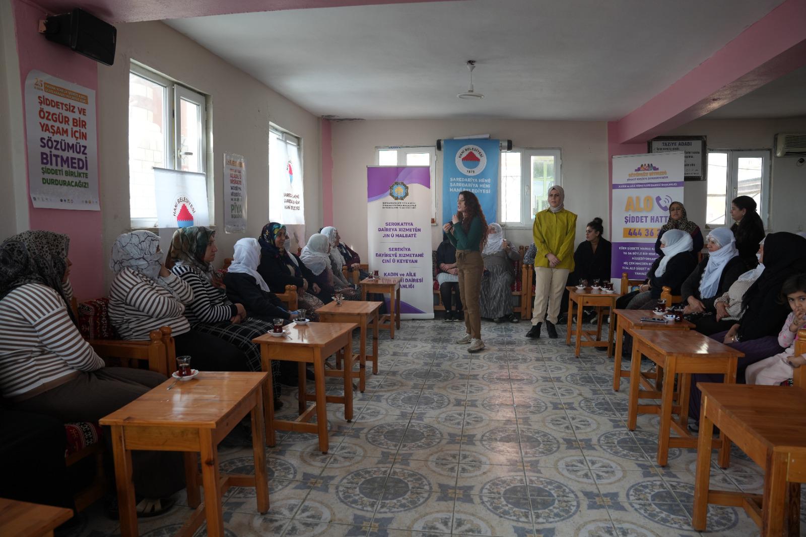 “Kadına Yönelik Şiddet”, “Şiddet Türleri” ve “Şiddetle Mücadelede Destek Mekanizmaları” başlıklarının anlatıldığı etkinlikte; kadına yönelik şiddetin, kadının fiziksel, psikolojik, cinsel veya ekonomik açıdan zarar görmesine neden olan ya da zarar görme ihtimali taşıyan her türlü davranış olduğu vurgulandı. Ayrıca 6284 Sayılı Kanun, acil yardım hatları, sığınma evleri ve dayanışma merkezleri gibi şiddete karşı güçlü mekanizmalara ilişkin bilgiler paylaşıldı.