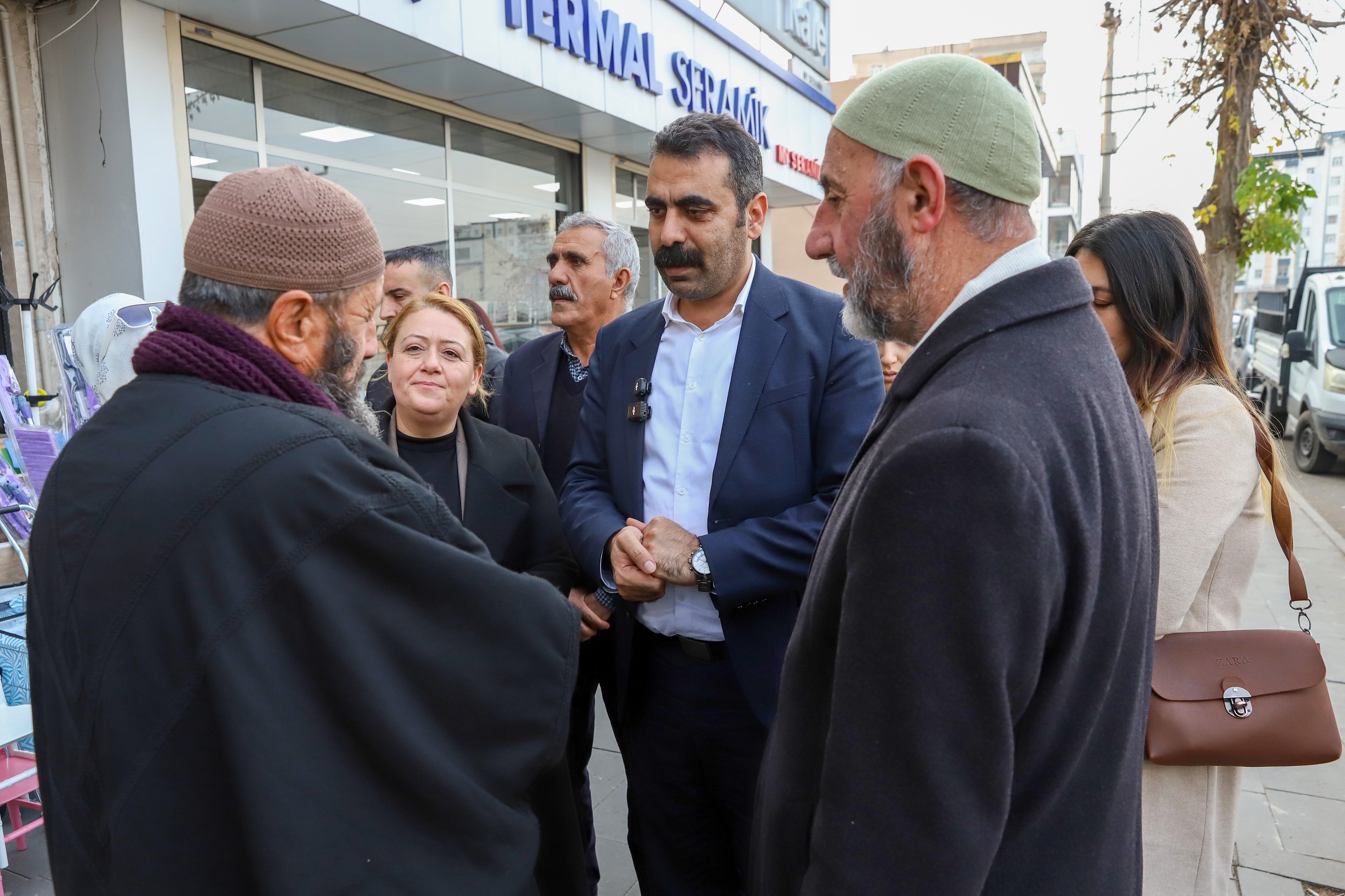 Diyarbakır Büyükşehir Belediyesi Eşbaşkanları Serra Bucak ve Doğan Hatun, Bağlar ilçesi Emek Caddesi’nde esnafı ziyaret ederek öneri ve talepleri sahada dinledi.
