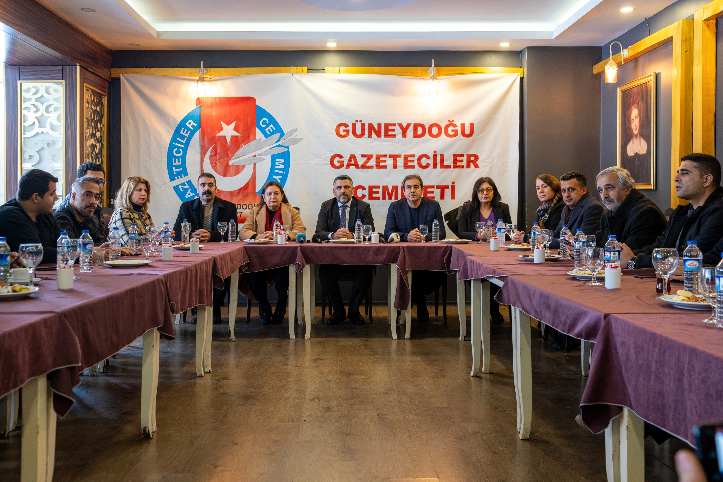 Diyarbakır Büyükşehir Belediyesi Eşbaşkanı Doğan Hatun, Dicle Fırat Gazeteciler Derneği (DFG) ve Güneydoğu Gazeteciler Cemiyetini (GGC) ziyaret ederek 10 Ocak Çalışan Gazeteciler Günü dolayısıyla basın emekçileriyle bir araya geldi. Buluşmaya Büyükşehir Belediyesi Eşbaşkanı Doğan Hatun'un yanı sıra, DEM Parti İl Eşbaşkanları Gülşen Özer ve Abbas Şahin, Yenişehir Belediyesi Eşbaşkanı Safiye Akdağ, Kayapınar Belediyesi Eşbaşkanı Berivan Gülşen Sincar, Sur Belediyesi Eşbaşkanı Adnan Örhan, Bağlar Belediyesi Eşbaşkanı Siraç Çelik katıldı.