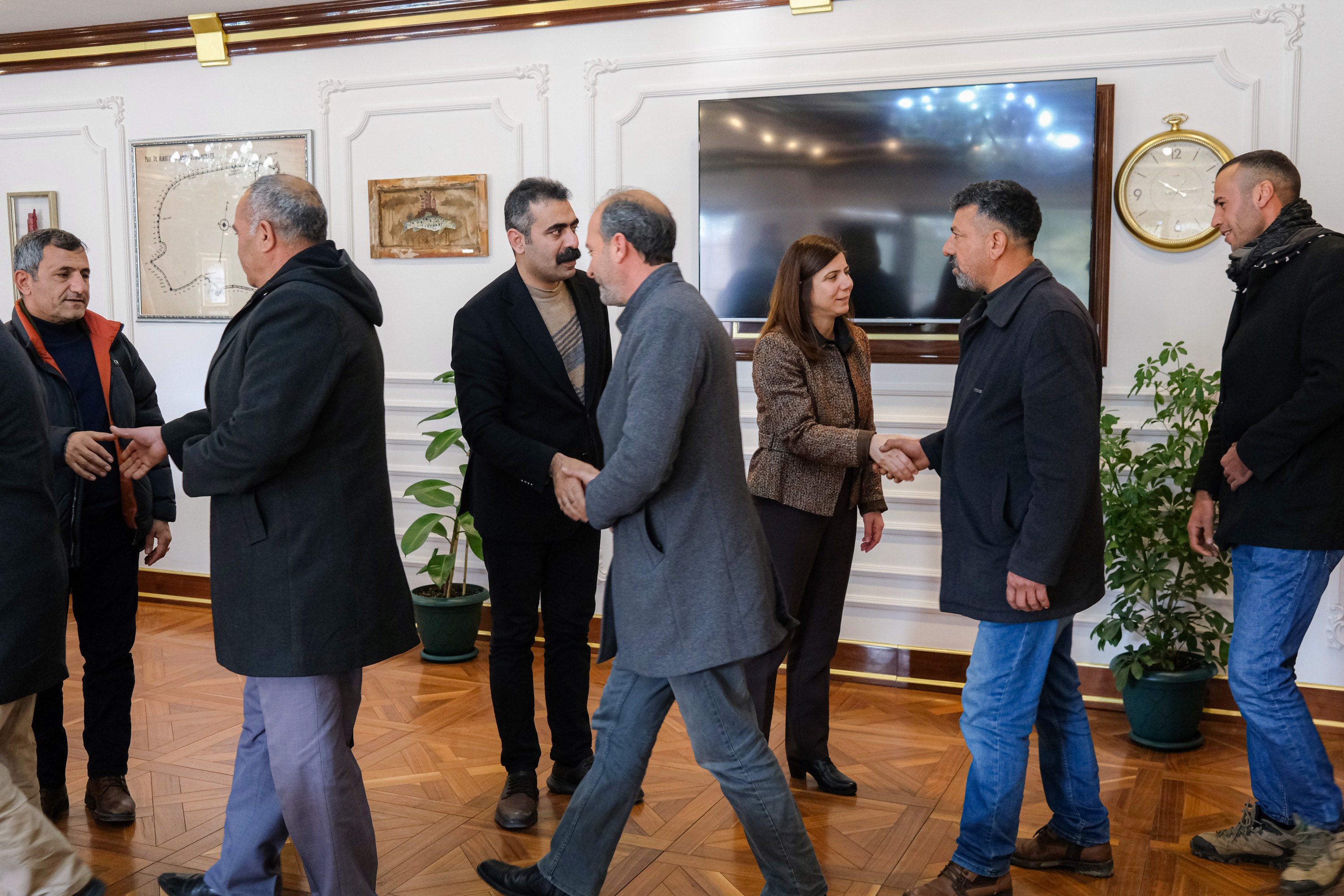 Çermik–Çüngüş ilçeleri ve çevre mahalleri Sosyal Yardımlaşma ve Dayanışma Derneği Başkanı Mustafa Sav, yönetim kurulu üyeleri ile ilçelerde görev yapan muhtarlar, Diyarbakır Büyükşehir Belediyesi Eşbaşkanları Serra Bucak ve Doğan Hatun’u ziyaret ederek, iki ilçede hayata geçirilen hizmetler nedeniyle teşekkür etti.