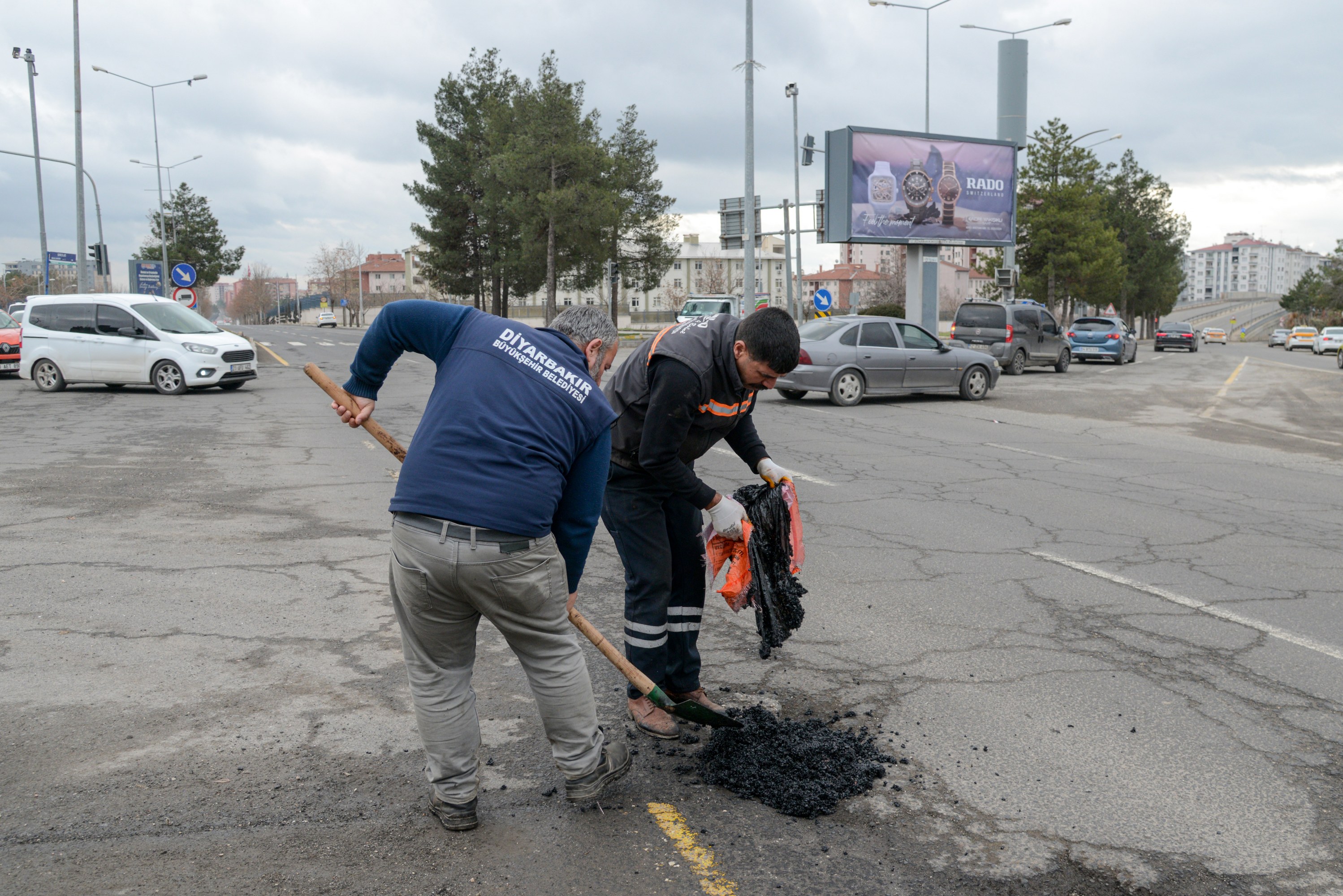 Çalışmalar hakkında bilgi veren Yol Yapım, Bakım ve Onarım Dairesi Başkanı Burhan Kayan, kentte son yılların en yoğun kar yağışının yaşandığını belirterek şu ifadeleri kullandı: “Ulaşımın aksamaması ve can güvenliğinin sağlanması amacıyla ekiplerimiz kesintisiz kar küreme ve tuzlama çalışmaları yürüttü. Ancak aşırı tuzlama, kar sularının asfalt yüzeyindeki çatlaklara sızması ve ardından yaşanan donma-çözülme süreci; ekonomik ömrünü tamamlamış, yıpranmış yollarda, eski yamalarda ve rögar çevrelerinde ciddi çukurlaşmalara neden oldu. Yağışların sona ermesiyle birlikte ekiplerimiz çukurlara hızlı şekilde müdahale etmektedir. Havanın uygun olmadığı günlerde soğuk asfaltla, uygun olduğu zamanlarda ise kendi plentimizde üretilen sıcak asfaltla yama çalışmaları sürdürülmektedir.”