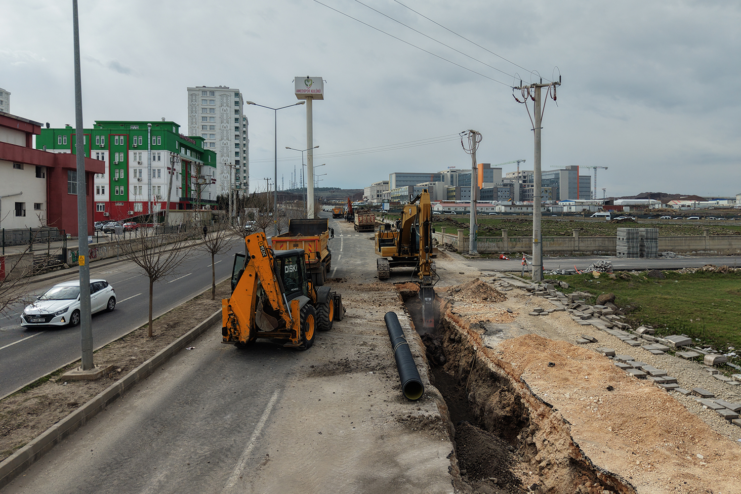 DİSKİ Genel Müdürlüğü tarafından hastane inşaat sahasının atık su yükünü karşılayacak yaklaşık 800 metre uzunluğunda kanalizasyon hattının yapımına başlandı. Çalışmalar, çok sayıda iş makinesi ve teknik personelle sahada yoğun şekilde sürdürülüyor.