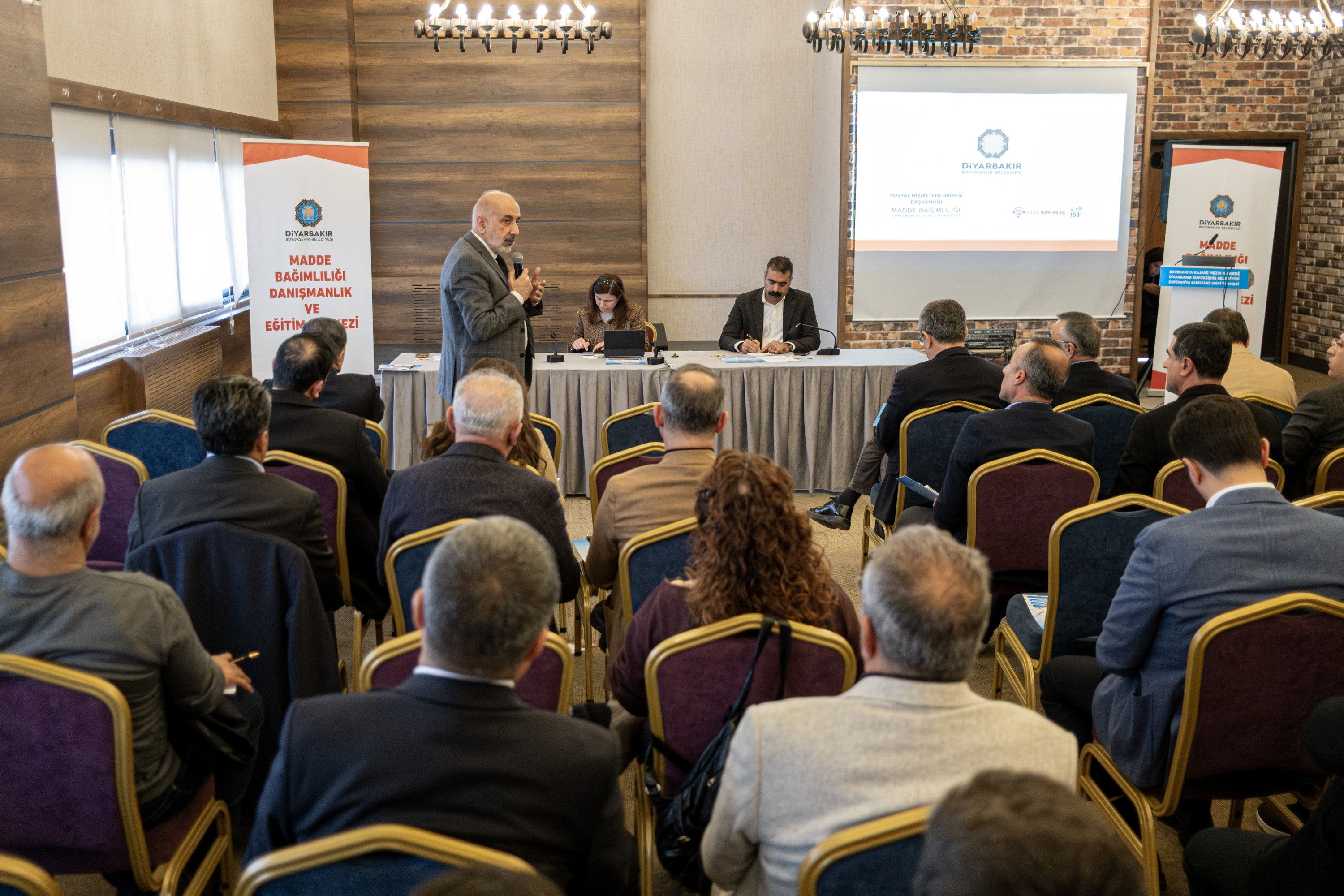 Büyükşehir Belediyesi Sosyal Hizmetler Dairesi Başkanlığına bağlı Madde Bağımlılığı Danışmanlık ve Eğitim Merkezi tarafından Çand Amed Kültür ve Kongre Merkezi’nde “Bağımlılık, Kent İhtiyacı ve Ortak Çözüm Modeli” başlıklı toplantı düzenlendi. Kentte var olan sorunlara yerel yönetimler, iş dünyası ve diğer kent bileşenleriyle birlikte ortak çözüm yolları geliştirmek amacıyla gerçekleştirilen toplantıya Büyükşehir Belediyesi Eşbaşkanları Serra Bucak ve Doğan Hatun, ilçe belediye eşbaşkanları, Genel Sekreter Yardımcısı Zerin Türk, Diyarbakır Ticaret ve Sanayi Odası (DTSO) Başkanı Mehmet Kaya, Diyarbakır Barosu Başkanı Abdülkadir Güleç, iş insanları ve sivil toplum örgütü temsilcileri katıldı.