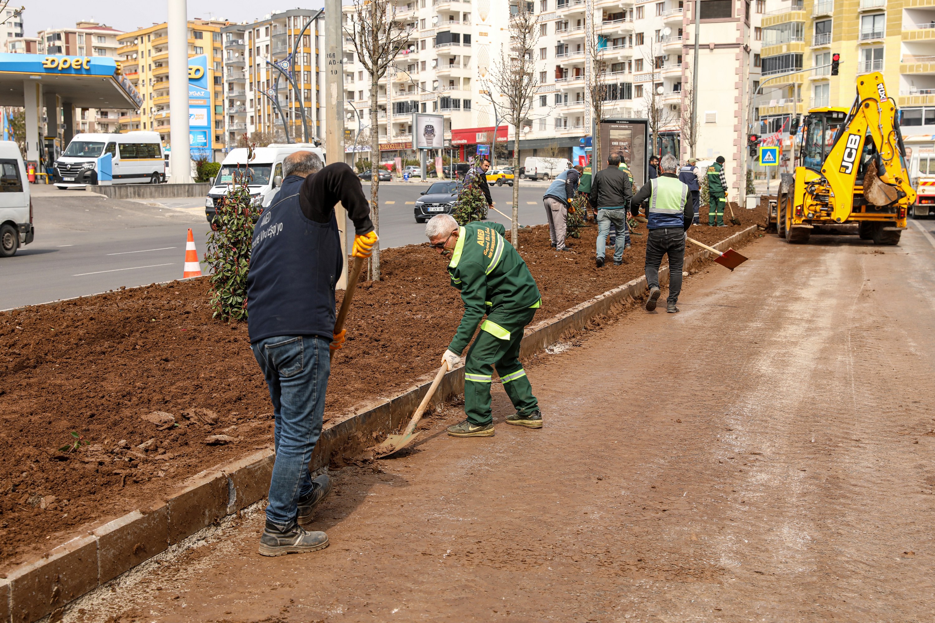 Park ve Bahçeler Dairesi Başkanlığı koordinesinde yürütülen çalışmalarda, Selahattin Eyyubi Bulvarı’nda gerçekleştirilen altyapı ve üstyapı işlemleri, bitki dokunuşlarıyla daha estetik bir görünüme kavuşturuluyor.