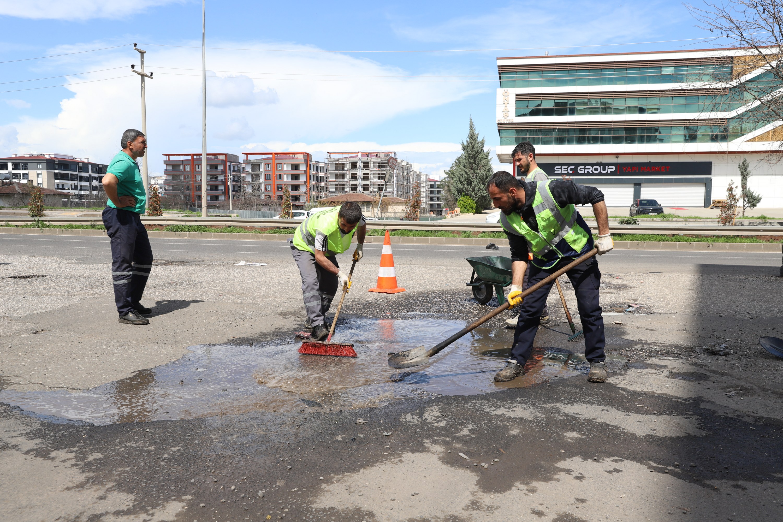 Diyarbakır Büyükşehir Belediyesi Yol Yapım, Bakım ve Onarım Dairesi Başkanlığı ekipleri, olumsuz hava koşullarının yol açtığı deformasyonları gidermek amacıyla Bağlar ilçesinde kapsamlı bir bakım ve onarım çalışması yürüttü. Çalışmalar kapsamında Karanfil 6, 7 ve 8. caddelerde bozulan yol yüzeyleri yenilendi. Ekipler, asfalt serimi öncesinde yollarda oluşan çukurlarda biriken suyu tahliye ederek zemini hazır hale getirdi, ardından sıcak asfalt serimi gerçekleştirdi.