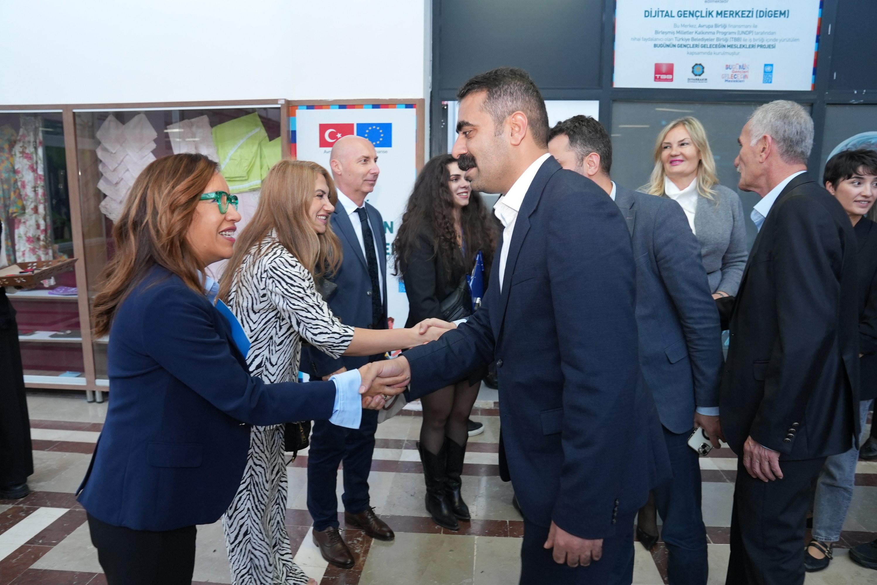 Akerdişî de Hemşaredarê Amedî yê Şaristanê Girdî Dogan Hatun, Hemşaredara Şaredarîya Surî Fatma Gulan Onkol, Hetkara Sekreterê Pêroyî yê TBB’yî Şengule Altan Arslan, Sereka Daîreya Hemkarî û Delegasyonê UE yê Tirkîya Maria Luisa Wygonowska, Temsilkara Mukîm a UNDP’yî Tirkîya Monica Merino, hemşaredarê qezeyan, serekê daîreyanê ma û xeylê ciwanî beşdar bîyî.