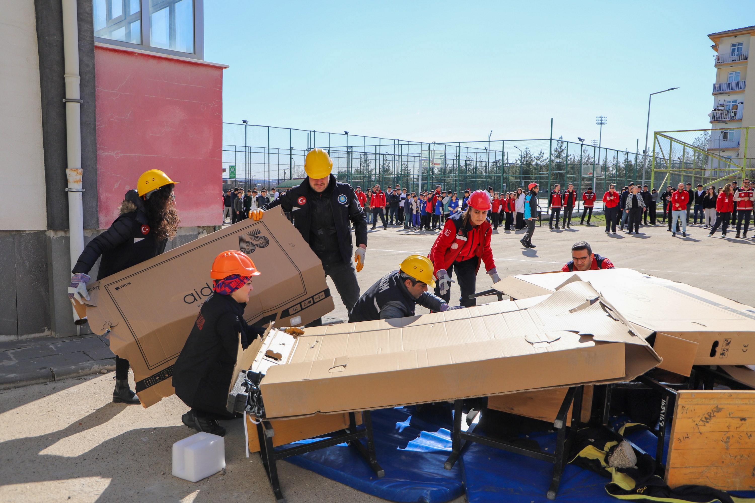 Çarçewaya 1-7ê Adare Hewteyê Erdlerzî de bi kordînasyonê Serekîya Daîreya Karanê Afate û Îdareyê Rîskî û Yewîna Gêrayîş-Xelaskerdişî ya Wezaretê Perwerdeyê Mîllî, bi amancê viraştişê hişyarîya vera afatan û musnayîşê wendekaran ê hereketanê raştan ke wexto ke erdlerzêko mumkîn bibo, Lîseya Sporî ya Amedî de tatbîqat ame viraştene.