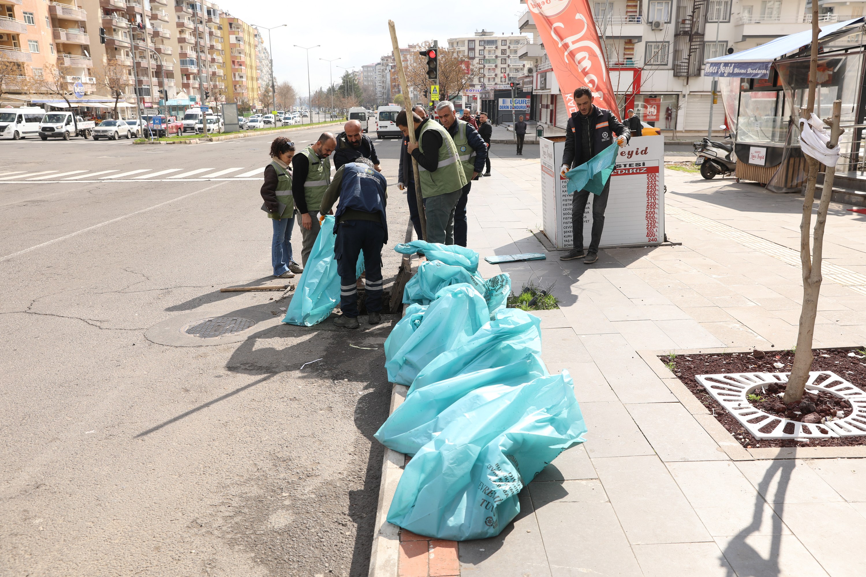 Şaredarîya Amedî ya Şaristanê Girdî; bi kordînasyonê şaredarîyanê qezayanê Kayapinar, Baglar, Yenîşehîr û Sûrî reyde, bi amancê vernîgirewtişê vindîkerdişê gan û malî yê varanê zafî yê mumkînan de û temînkerdişê xebitnayîşê bêvindertene yê trafîkê şaristanî, xebatanê pakkerdişî ra ke mazgalanê xetanê awa varanî de keno, 270 ton eşte vet.